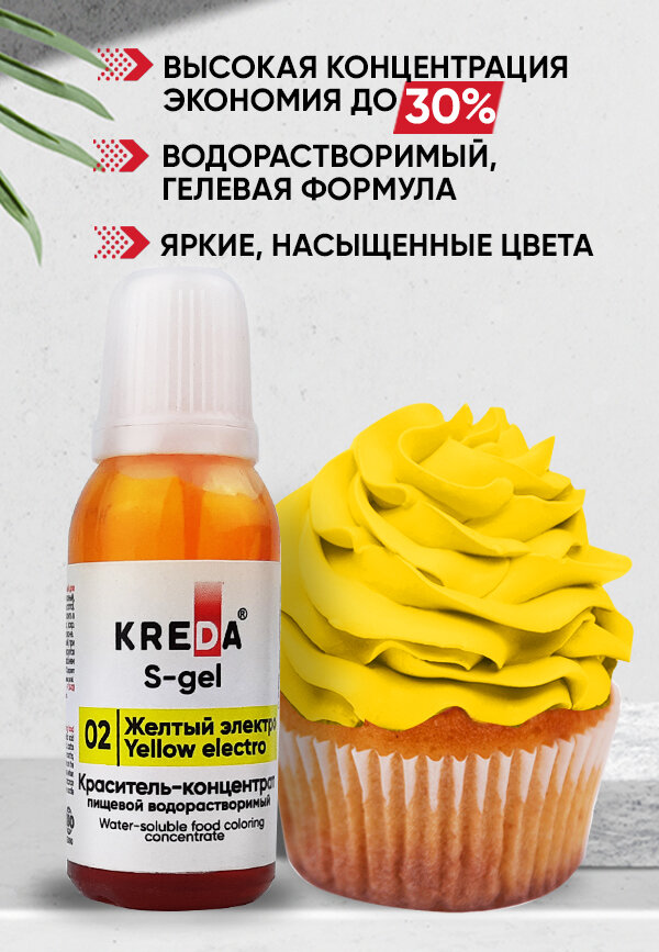 СохранитьПищевой краситель Kreda S-gel, желтый электро, 10 мл, гелевый, водорастворимый интересное: