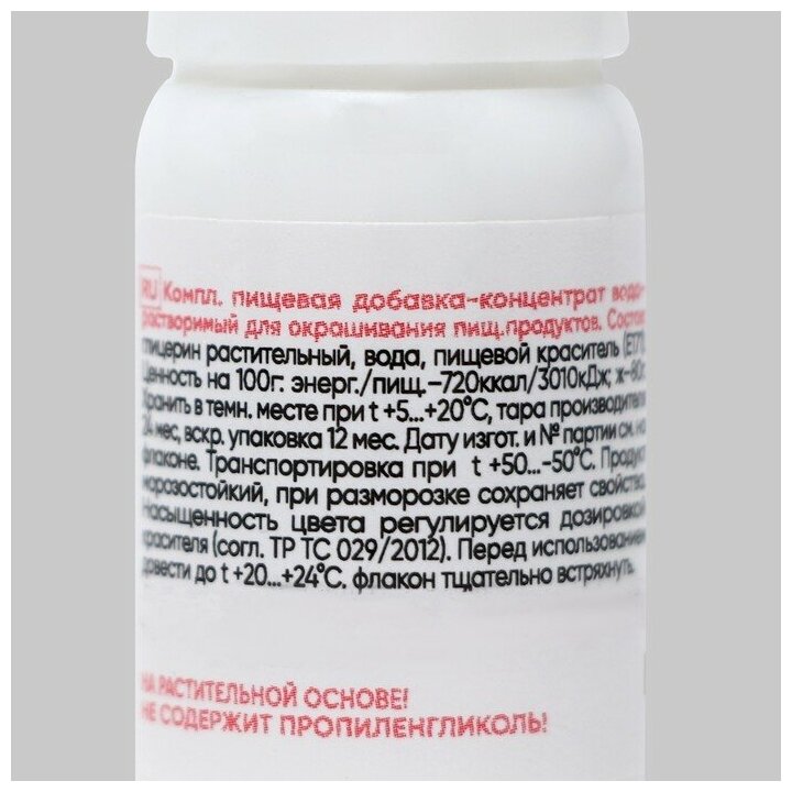 | Состав | вода дистиллированная, сироп глюкозный натуральный, пищевые красители, лимонная кислота |