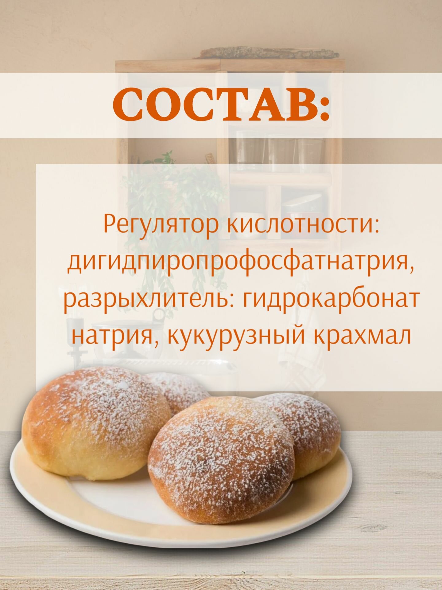| Состав | Дигидропирофосфат натрия (регулятор кислотности), гидрокарбонат натрия (разрыхлитель), кукурузный крахмал, ароматизатор. |