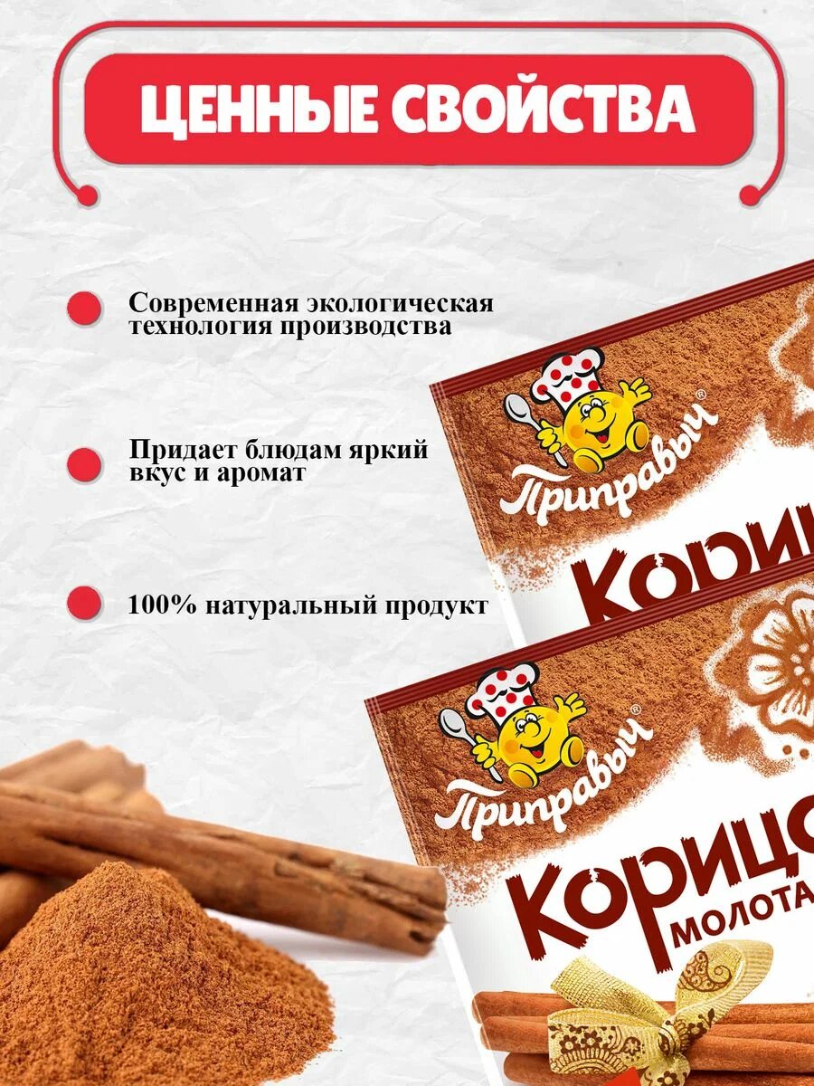 Ниже Вы можете прочитать отзывы на Корица молотая натуральная Приправыч без ГМО, 10 грамм, 30 шт., ознакомится с подробными характеристиками, посмотреть интересные обзоры и фотографии на Корица молотая натуральная Приправыч без ГМО, 10 грамм, 30 шт..