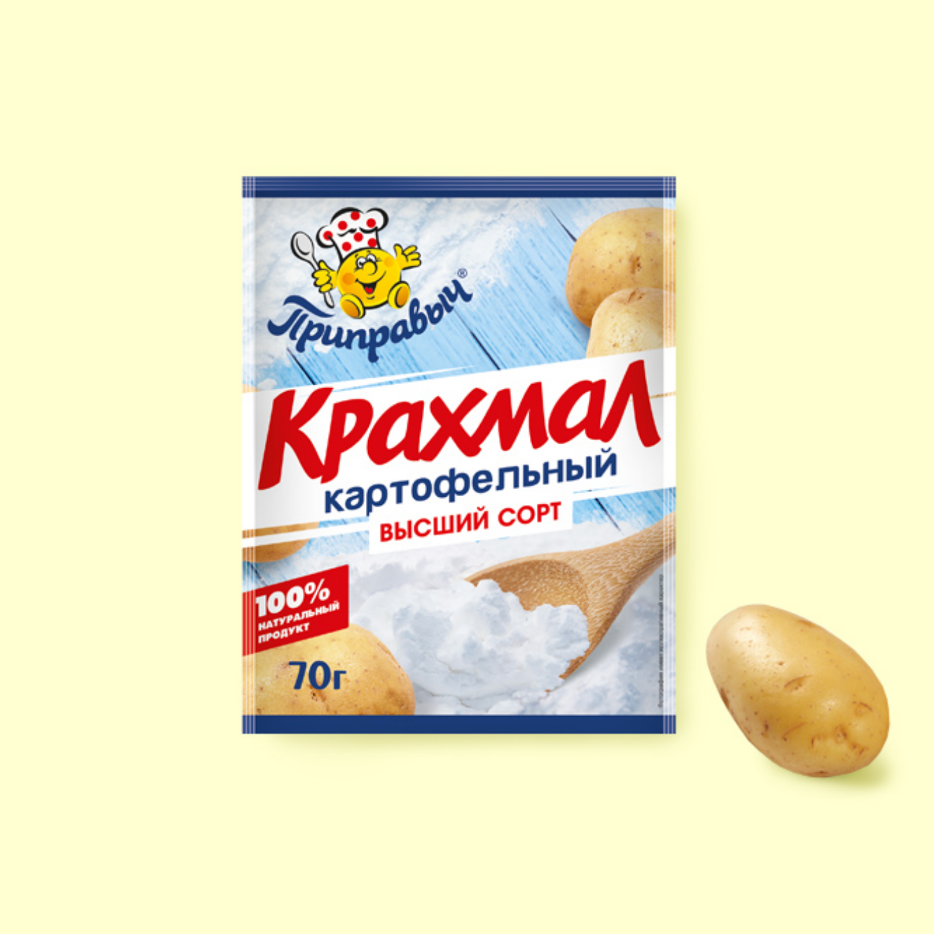 Крахмал Приправыч Высший сорт, картофельный, ГОСТ 53876, без ГМО, органический, 70г, 20 шт.
