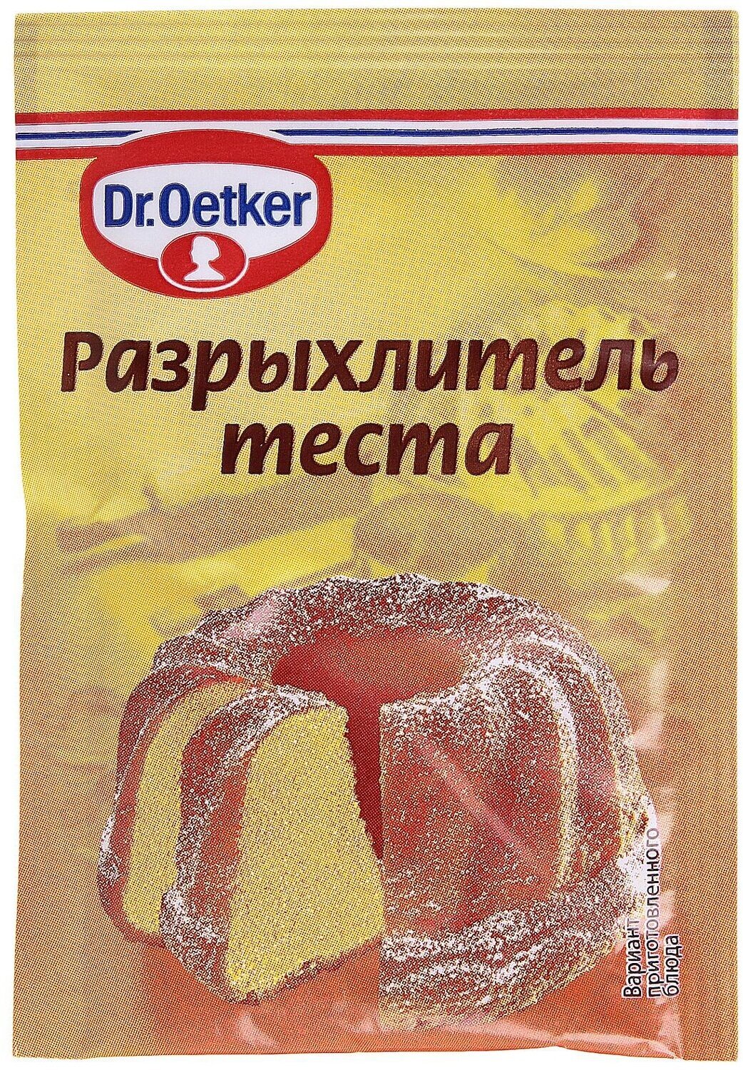 | Дополнительная информация | 10г.; 1 пакетик рассчитан на 500г муки. Для придания тесту объёма и равномерной пористой структуры разрыхлитель теста Dr. Oetker необходимо добавить в муку перед замесом. |