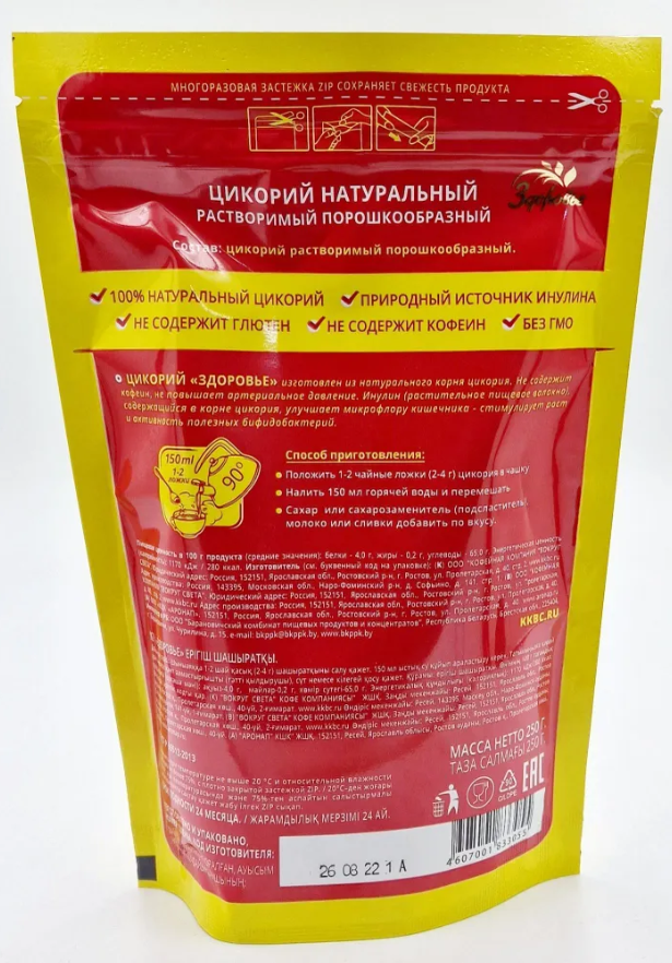 СохранитьУпаковка из 12 штук Цикорий Здоровье 100г zip-пакет порош интересное: