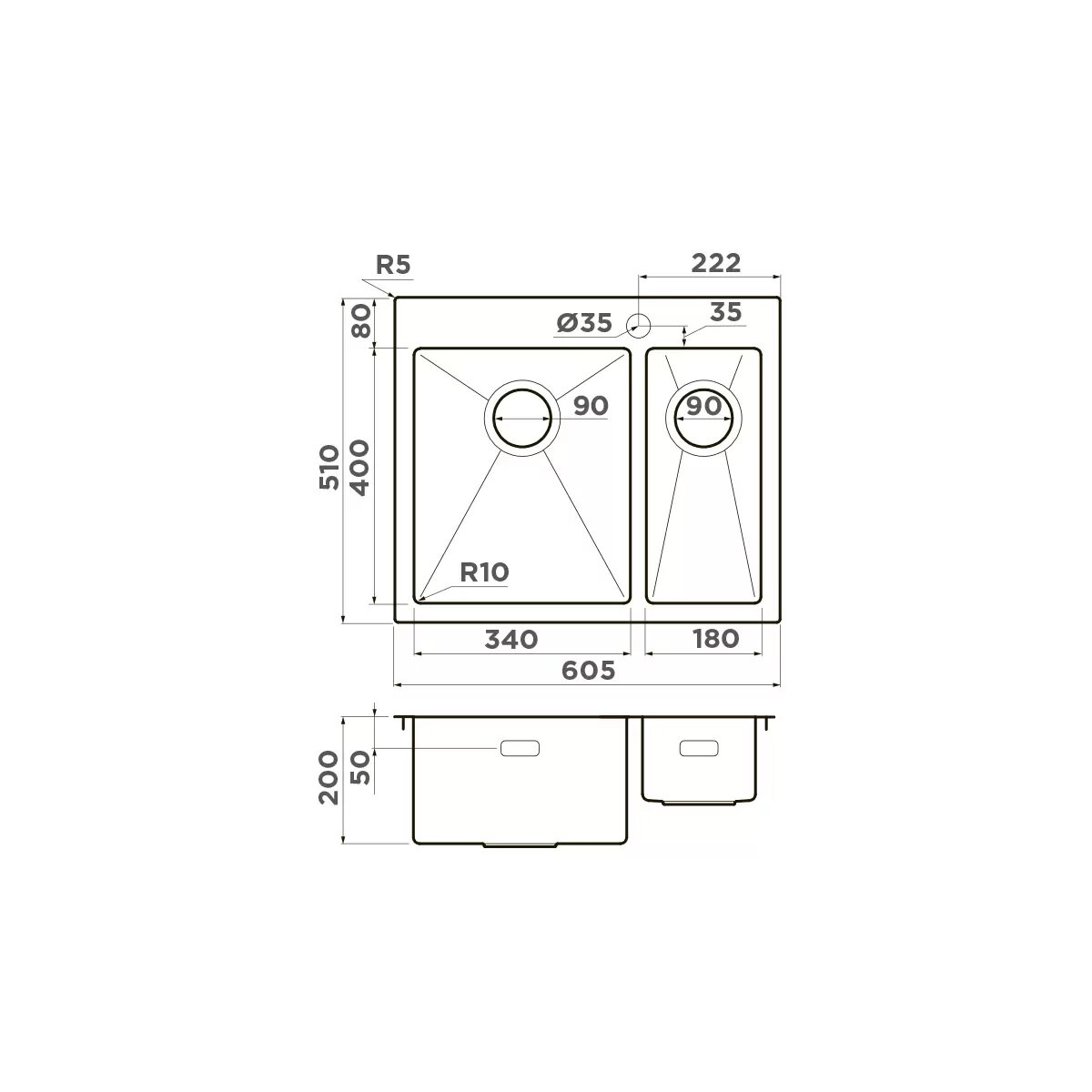 Кухонная мойка OMOIKIRI Akisame 60-2-IN-L 60,5х51см нерж.сталь/нержавеющая сталь