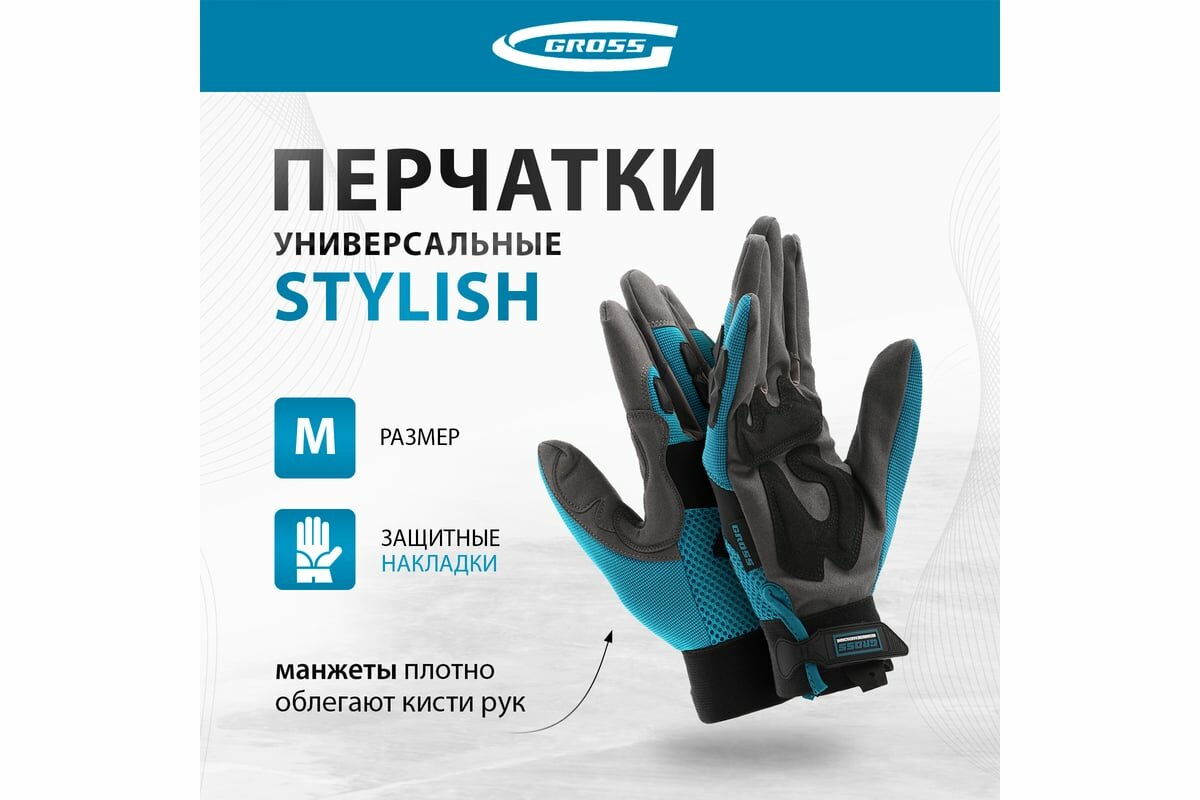 Перчатки универсальные комбинированные, с защитными накладками, STYLISH, размер M (8) Gross