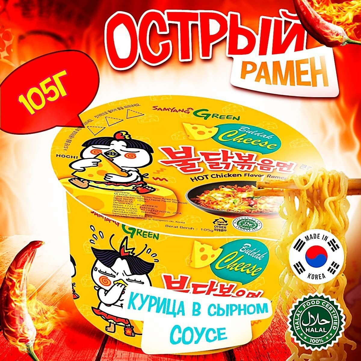 Ниже Вы можете прочитать отзывы на Лапша Samyang Острая курица с сыром 105 г, ознакомится с подробными характеристиками, посмотреть интересные обзоры и фотографии на Лапша Samyang Острая курица с сыром 105 г.