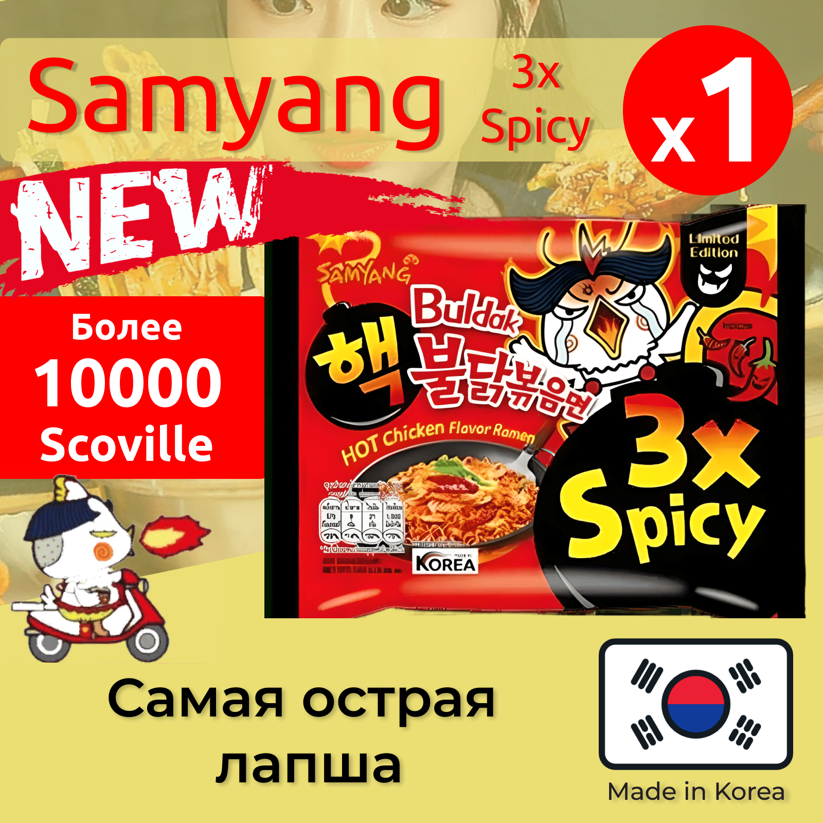 Лапша Самьянг / Самянг / Samyang x3 Spicy, Самая острая Корейская очень Огненная лапша, 1 пачка 140г