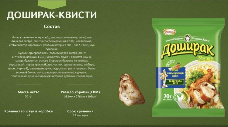 | Дополнительная информация | лапша доширак квисти, в коробке |