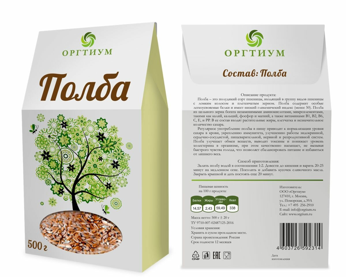 Полба цельнозерновая, 500г, Оргтиум