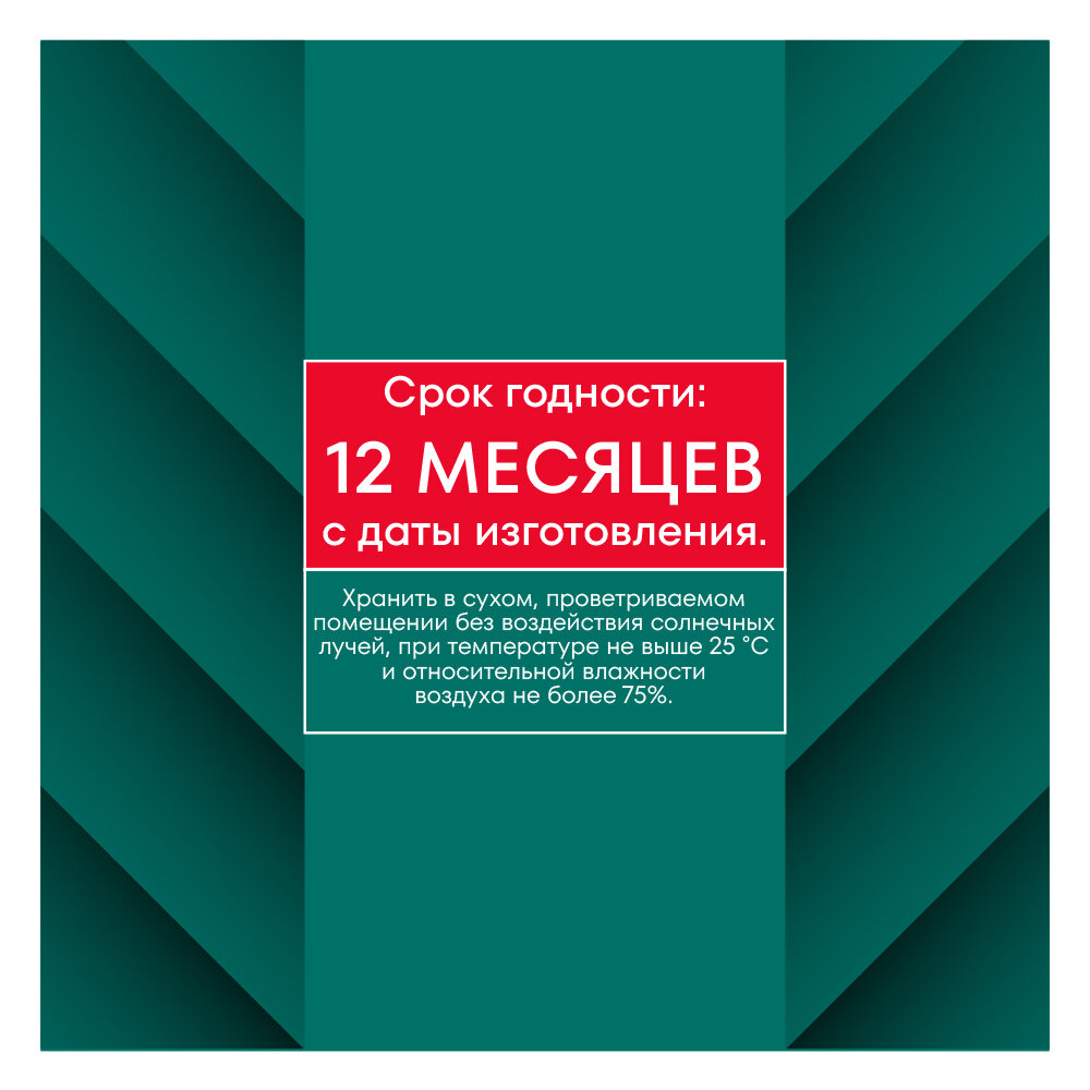 | Условия хранения | Хранить в сухом, проветриваемом помещении без воздействия солнечных лучей, при температуре не выше 25 °C и относительной влажности воздуха не более 75%. |