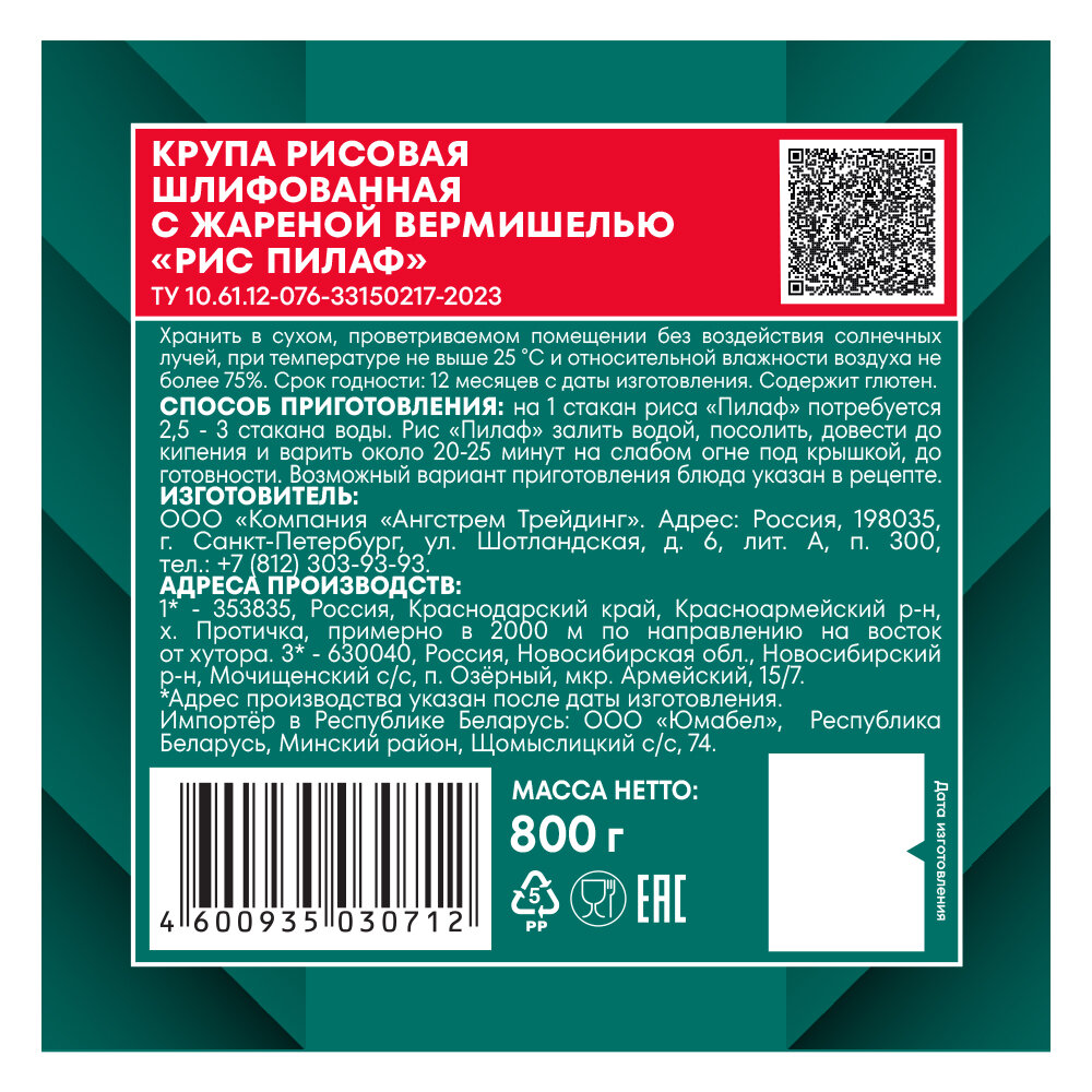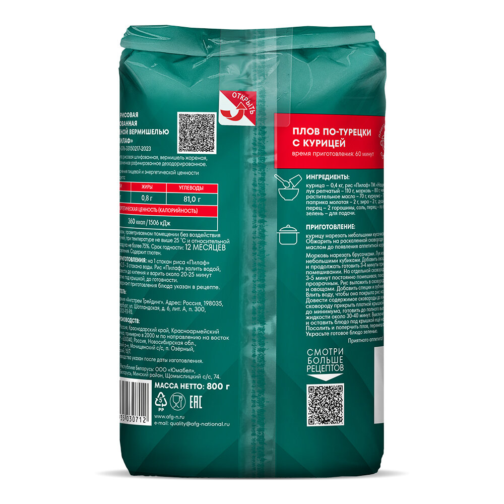| Состав | рис среднезёрный шлифованный, обработанный маслом, вермишель жареная |