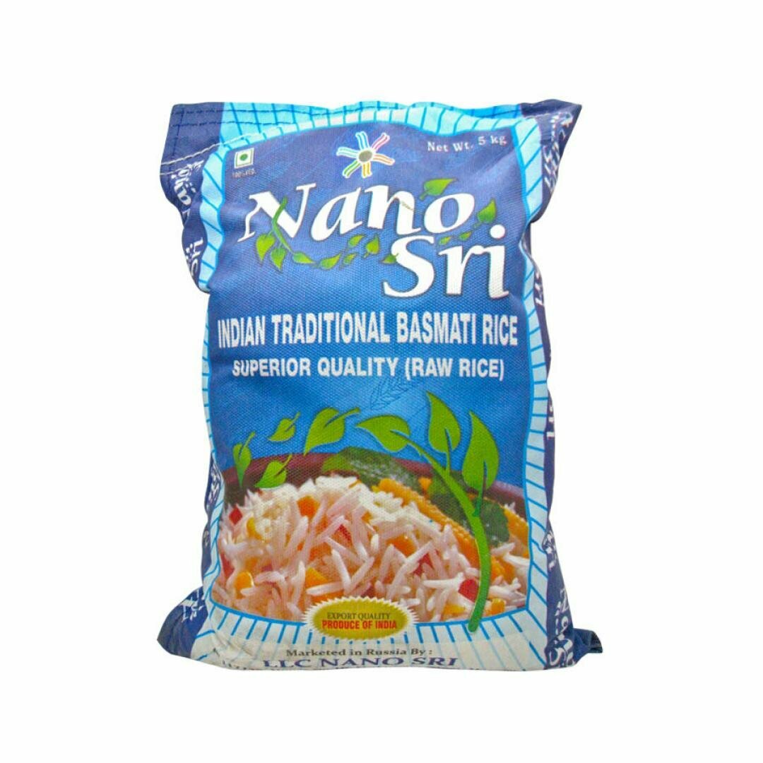 Рис басмати индийский непропаренный Nano Sri длиннозерный, 5 кг