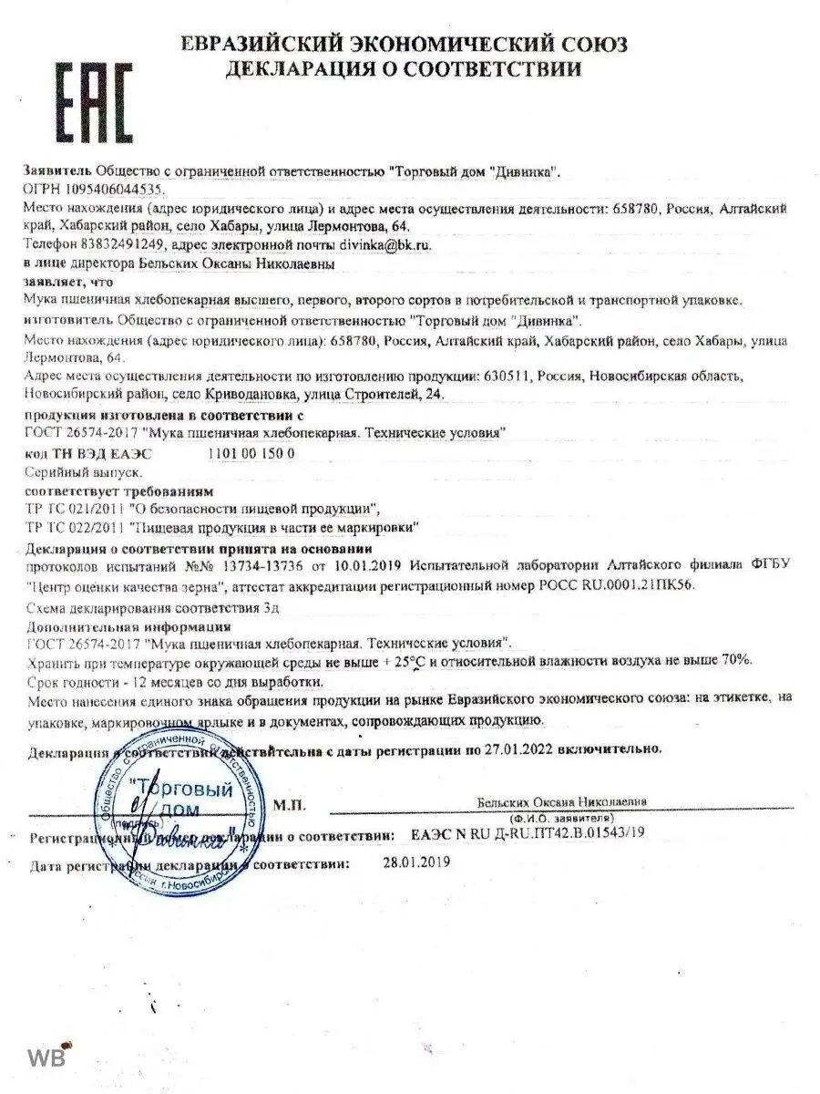 Мука пшеничная высшего сорта дивинка, 2 кг