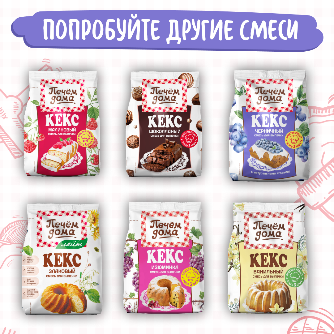 Смесь для выпечки Кекс Печем дома Черничный 300 гр x 8 штук в коробке, Русский Продукт