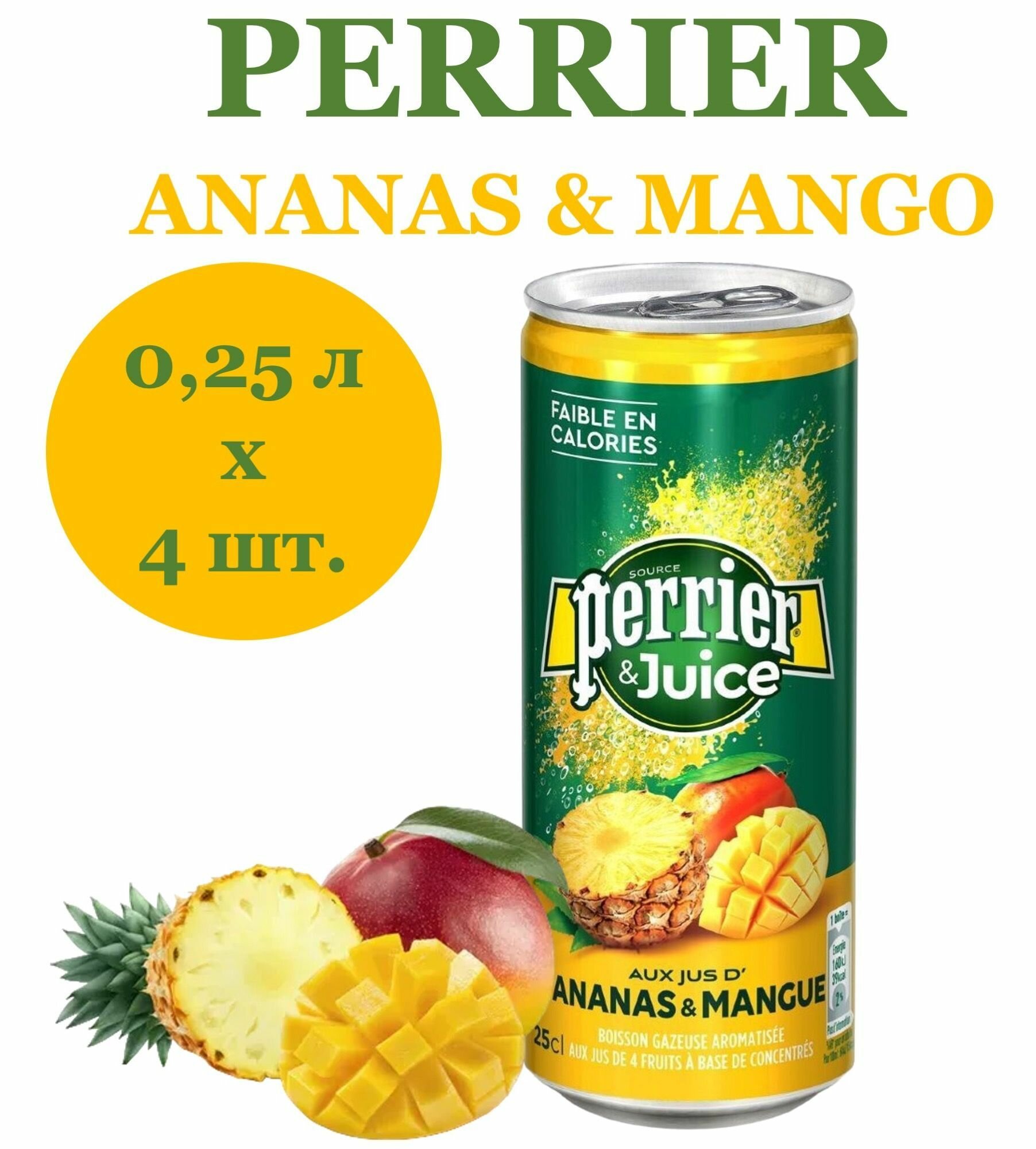 Купить Напиток газированный Perrier (Перье) Ананас-Манго 0,25 л х 4 шт, ж/б