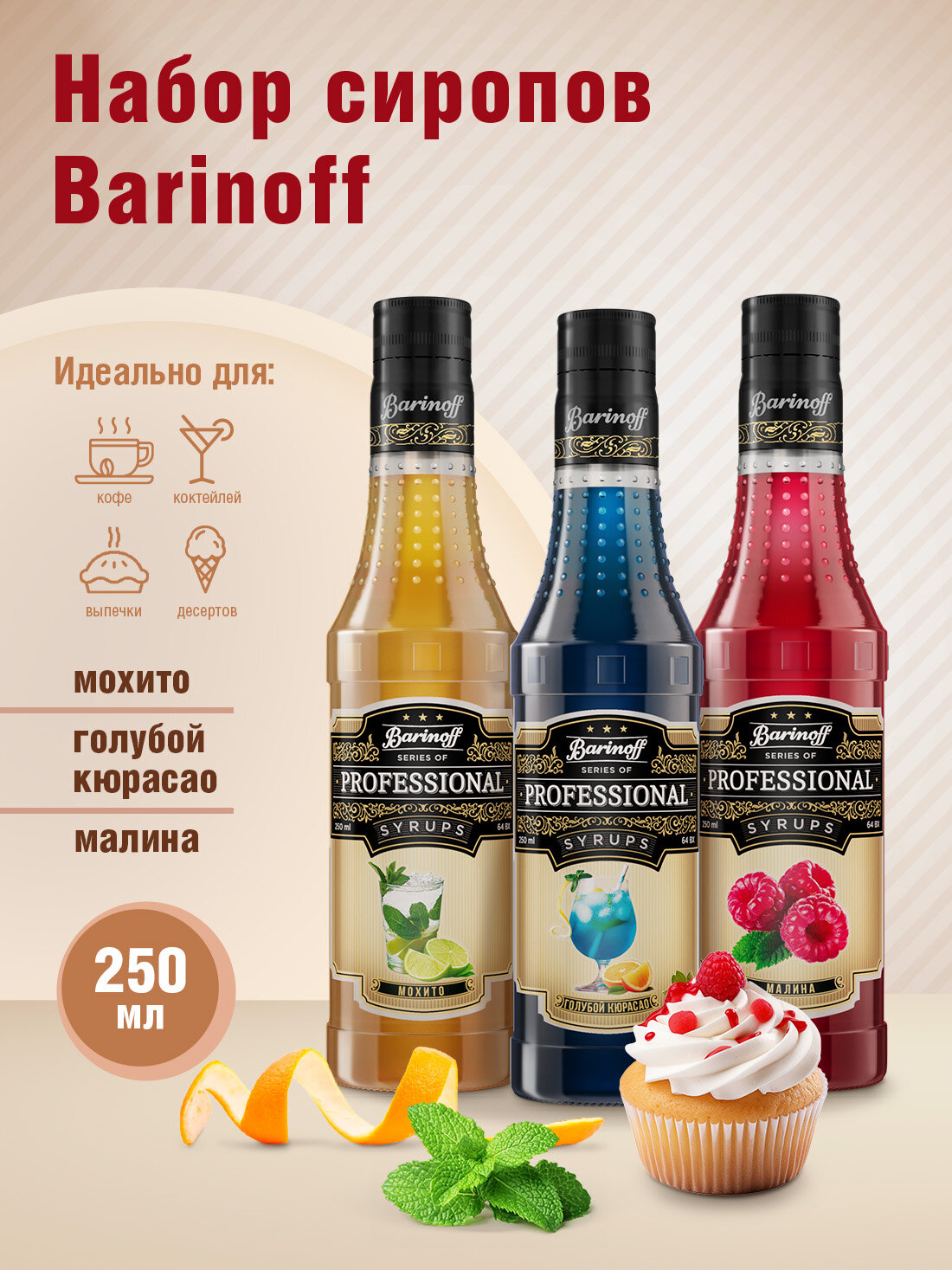 Купить Набор сиропов Barinoff для кофе и коктейлей Малина, Голубой Кюрасао, Мохито (3 шт по 330 г /250 мл)
