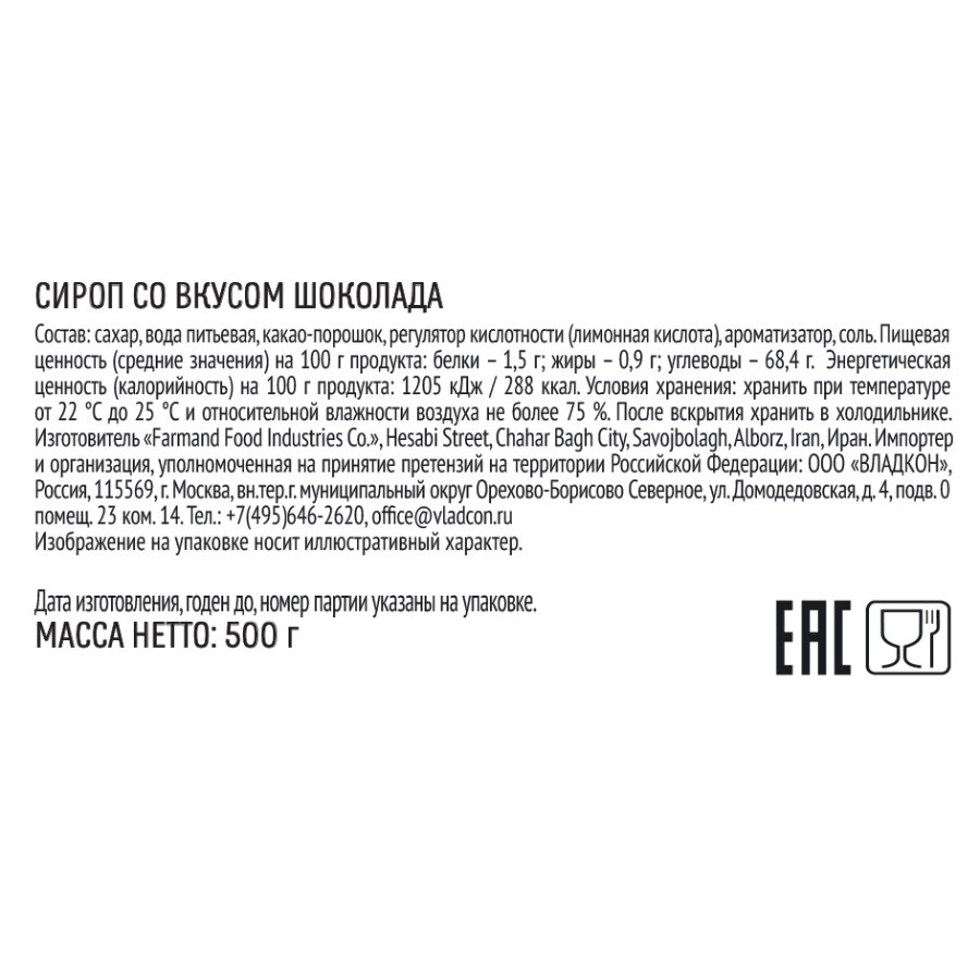 Сироп Топпинг Шоколад для кофе, десертов, коктейлей 500 гр