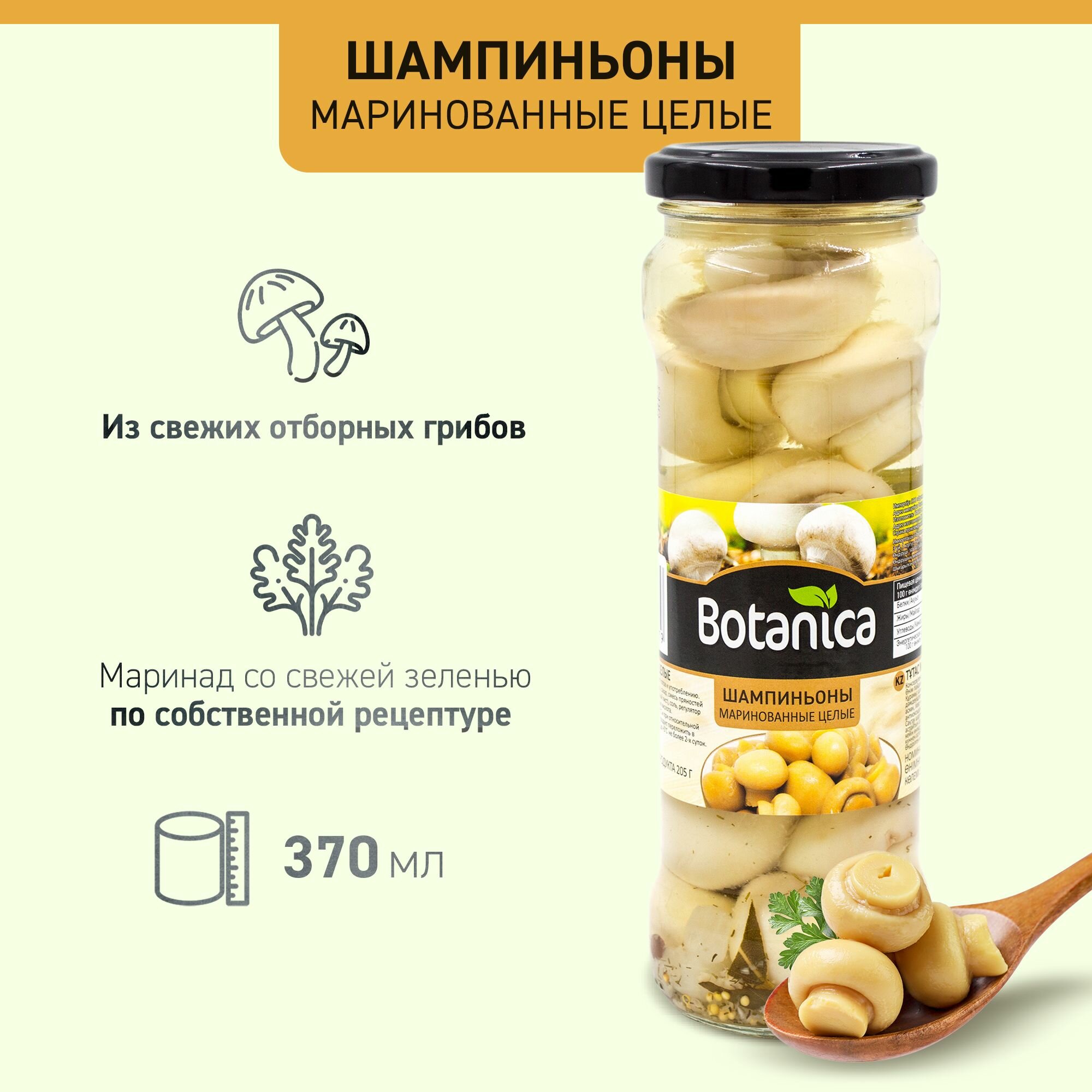 Грибы шампиньоны маринованные целые, Botanica, 370 мл