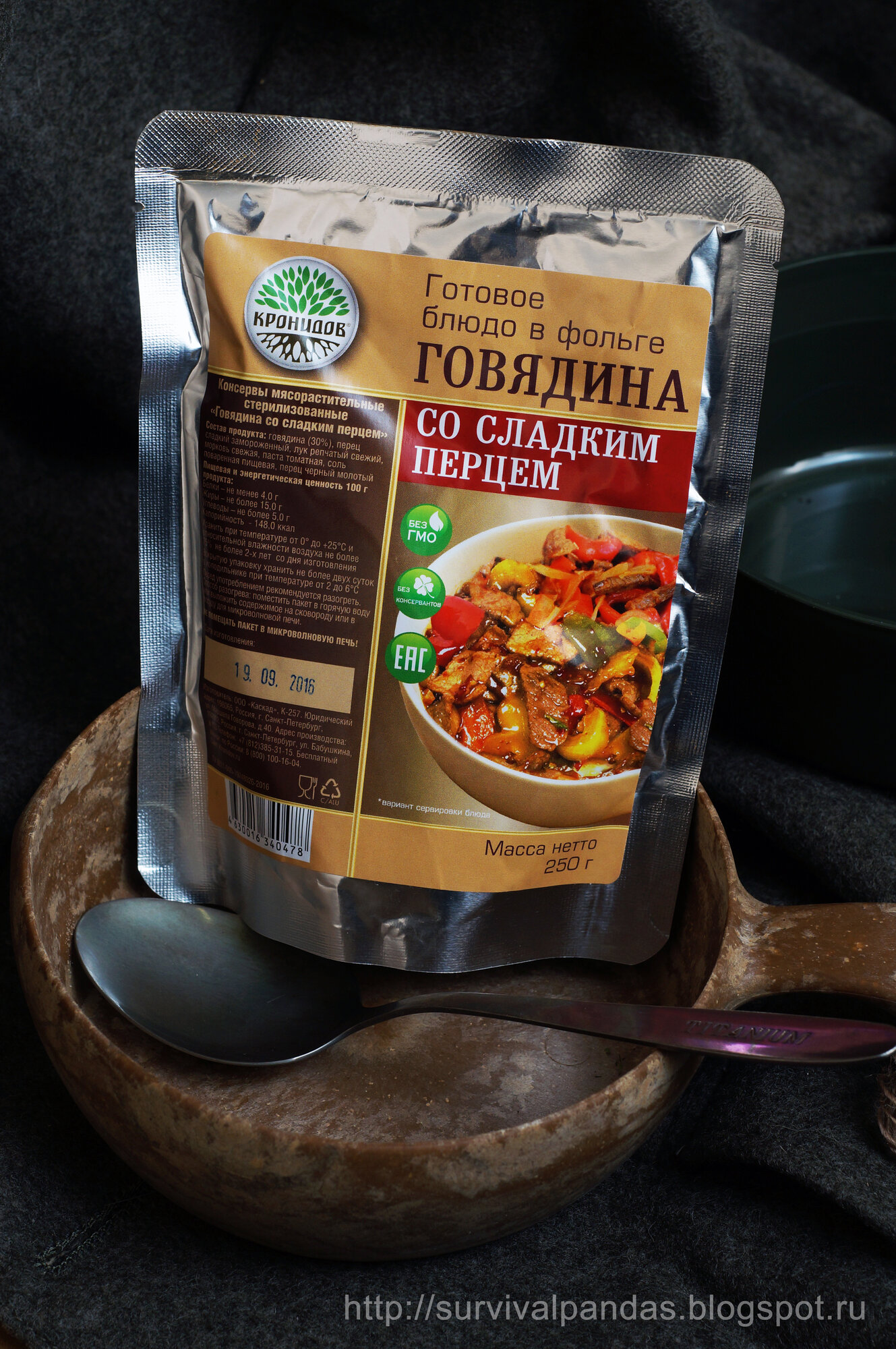 Готовое блюдо в реторт-пакете "Говядина со сладким перцем " Кронидов. Сухой паек для охоты, рыбалки, в поход. Набор 5 шт. по 250гр.