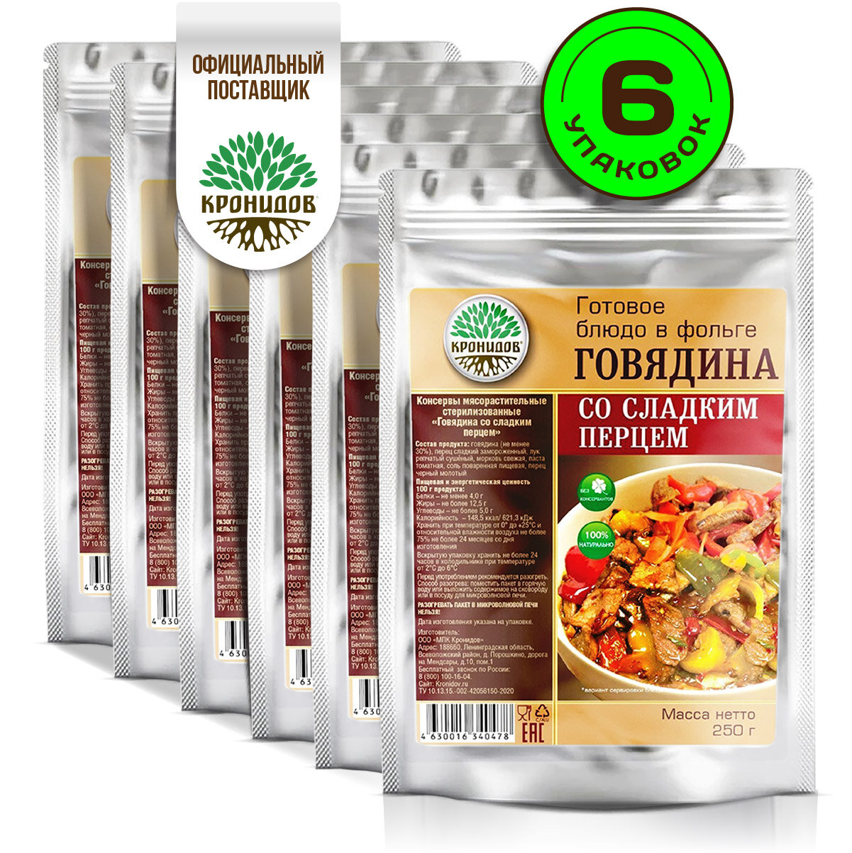 Купить Кронидов Говядина со сладким перцем Готовое блюдо в реторт-пакете. Консерва натуральная Набор 6 шт. по 250 г