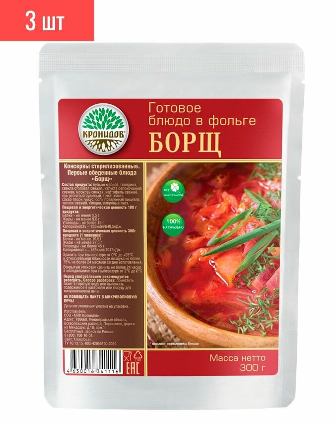 Купить Кронидов Борщ Готовое блюдо в фольге. Консерва натуральная Набор 3 шт. по 300 г