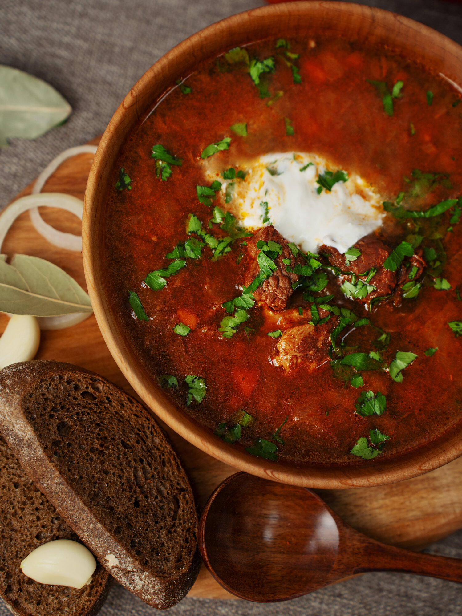 | Состав | Картофель свежий, говядина, лук репчатый, морковь свежая, свекла, капуста, томатная паста, соль, сахар, уксус, вода, специи, соус кулинарный |