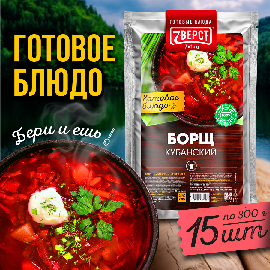 Ниже Вы можете прочитать отзывы на 7 вёрст Борщ с говядиной. Готовая еда в реторт-пакете. Консервы натуральные. Набор 15 уп. по 300 г, ознакомится с подробными характеристиками, посмотреть интересные обзоры и фотографии на 7 вёрст Борщ с говядиной. Готовая еда в реторт-пакете. Консервы натуральные. Набор 15 уп. по 300 г.