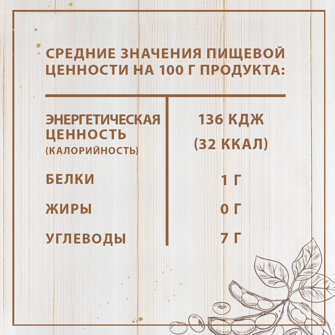 | Состав | ростки соевых бобов, вода питьевая, соль, сахар, регуляторы кислотности: лимонная кислота, аскорбиновая кислота; уплотнитель: хлорид кальция. |