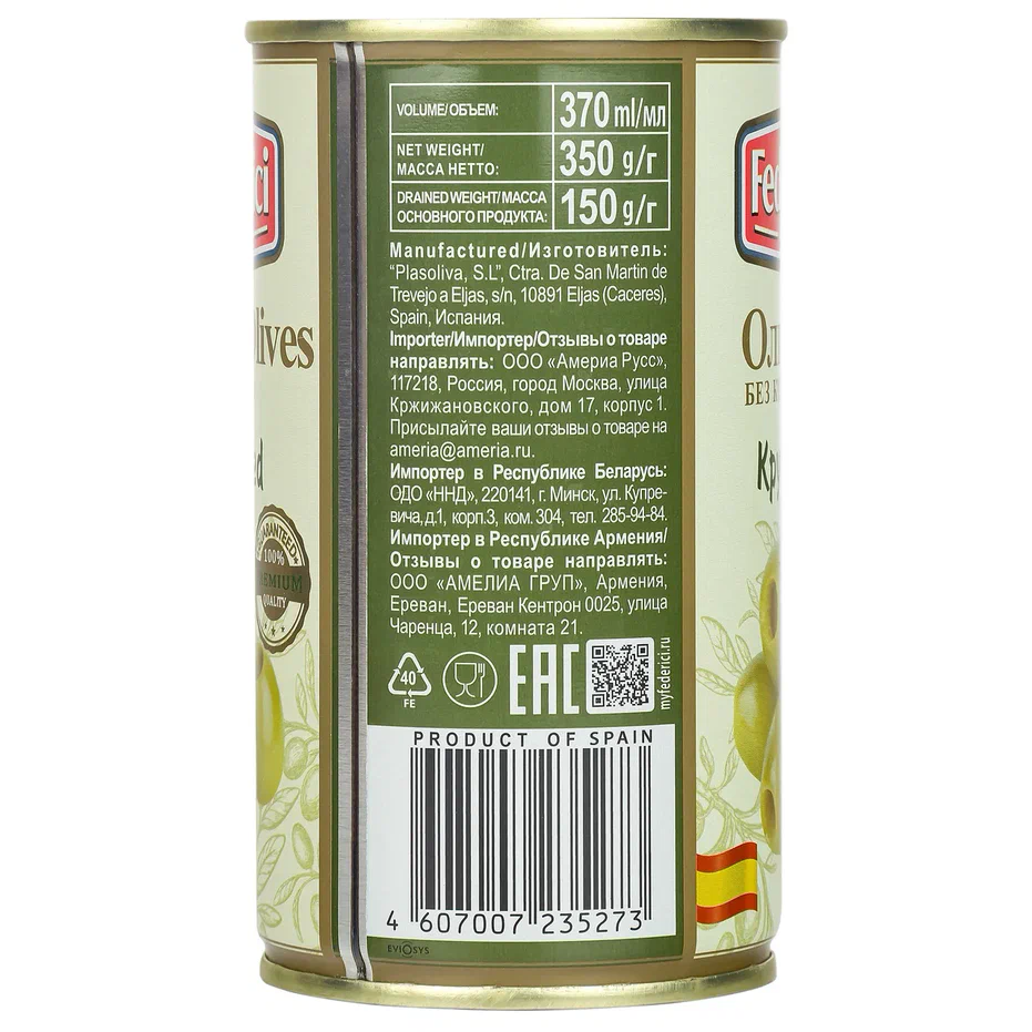 Оливки Federici "Гигантские", крупные без косточки, 400 гр., Италия