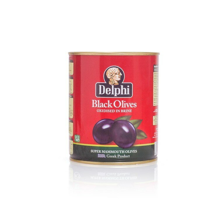 DELPHI Маслины черные с косточкой в рассоле, 820 г