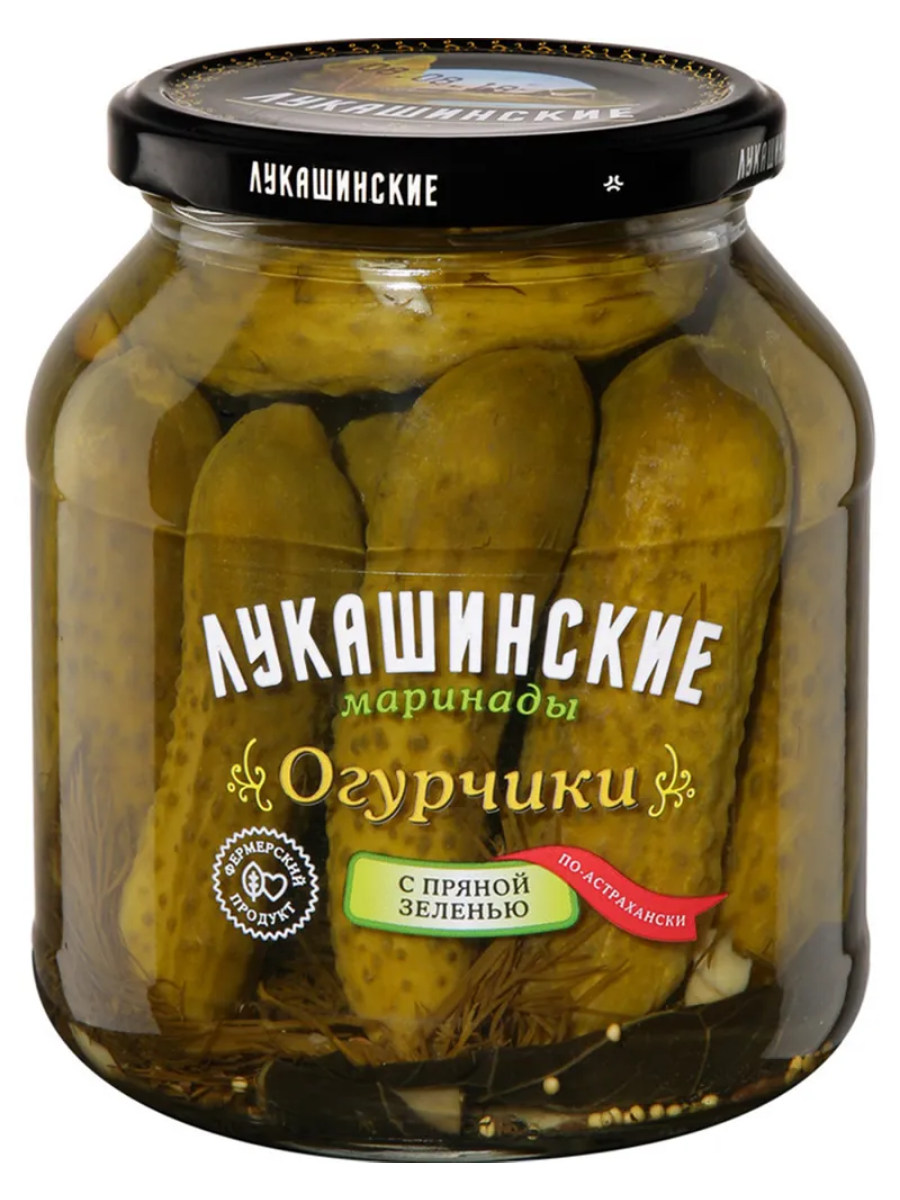 | Состав | огурцы, вода, чеснок, зелень, соль, регулятор кислотности уксусная кислота, специи (в т.ч. семена горчицы) |