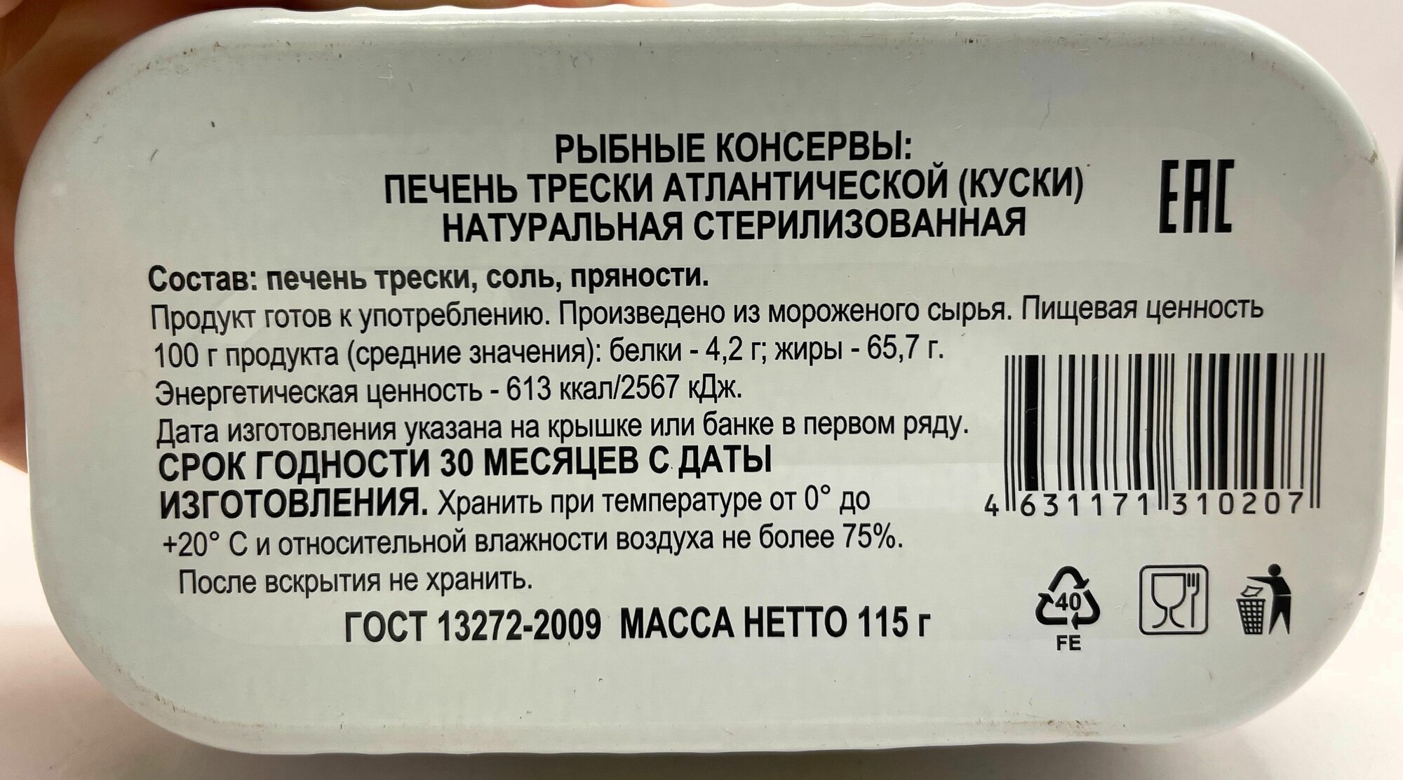 | Вид морепродуктов | печень трески |