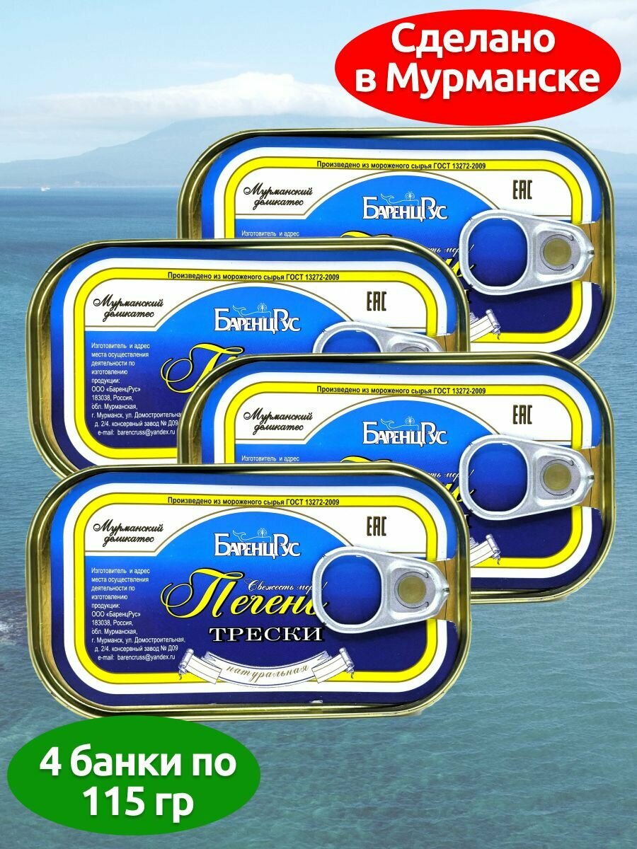 Купить Печень трески БаренцРус натуральная ГОСТ Баренц Рус 115 г - 4 банки
