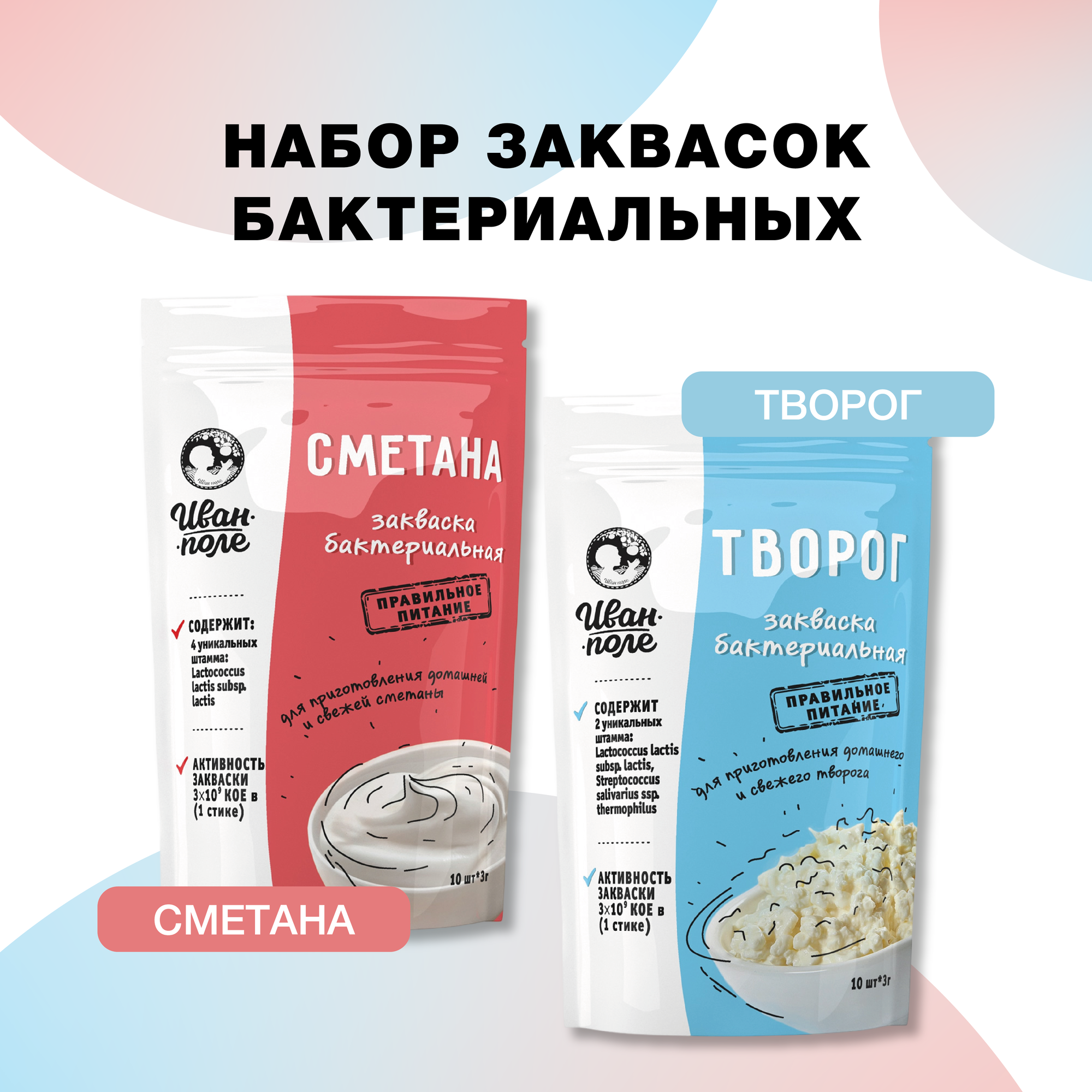 Закваски набор Творог+Сметана, 20 порций по 3 г, сухая бактериальная, Иван-поле