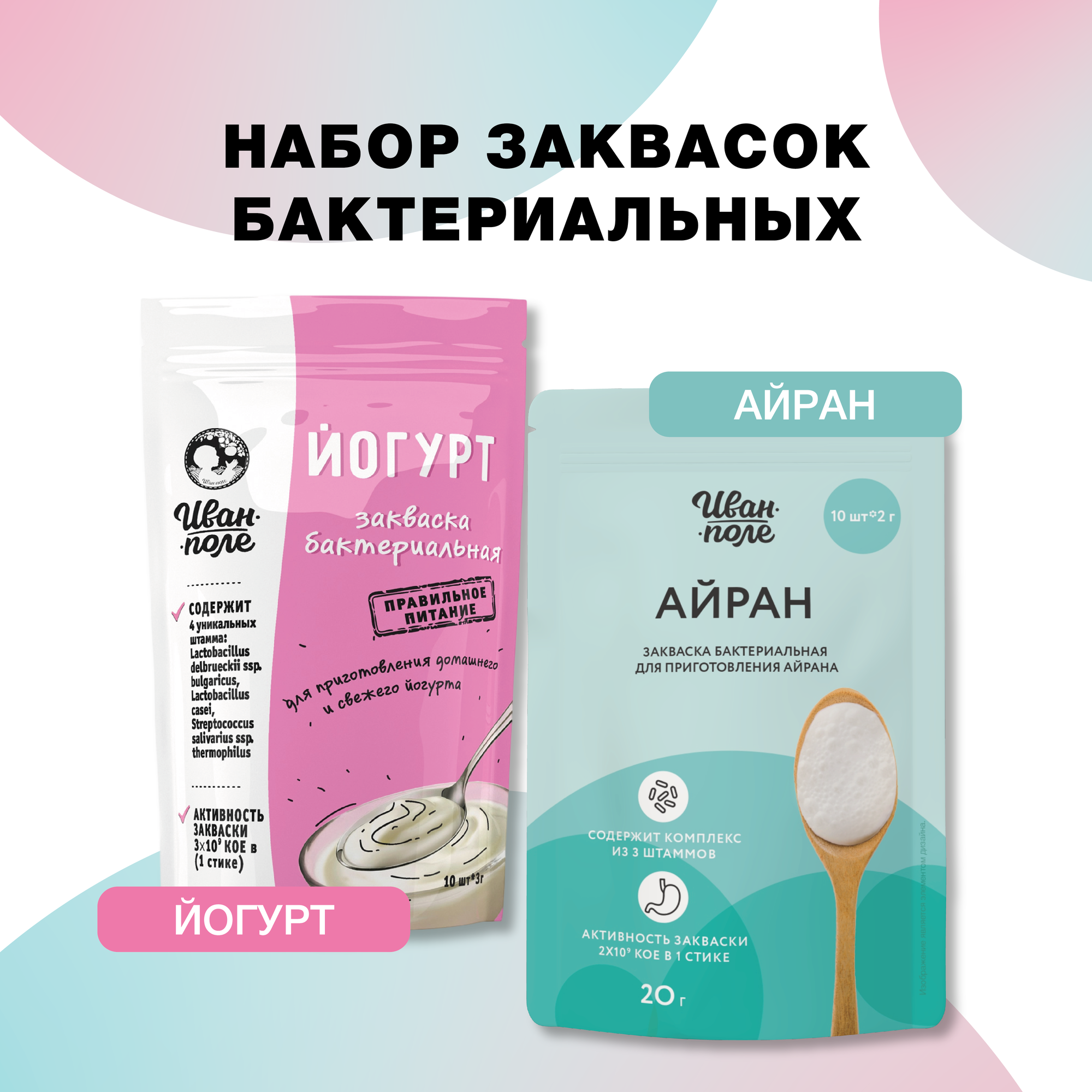 Закваска набор Йогурт + Айран, 20 порций, сухая бактериальная, Иван-поле