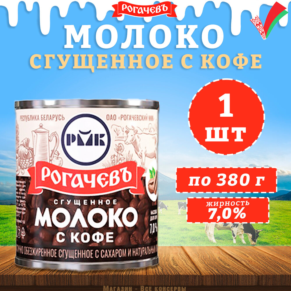 Молоко сгущенное с кофе 7%, Рогачев, 1 шт. по 380 г