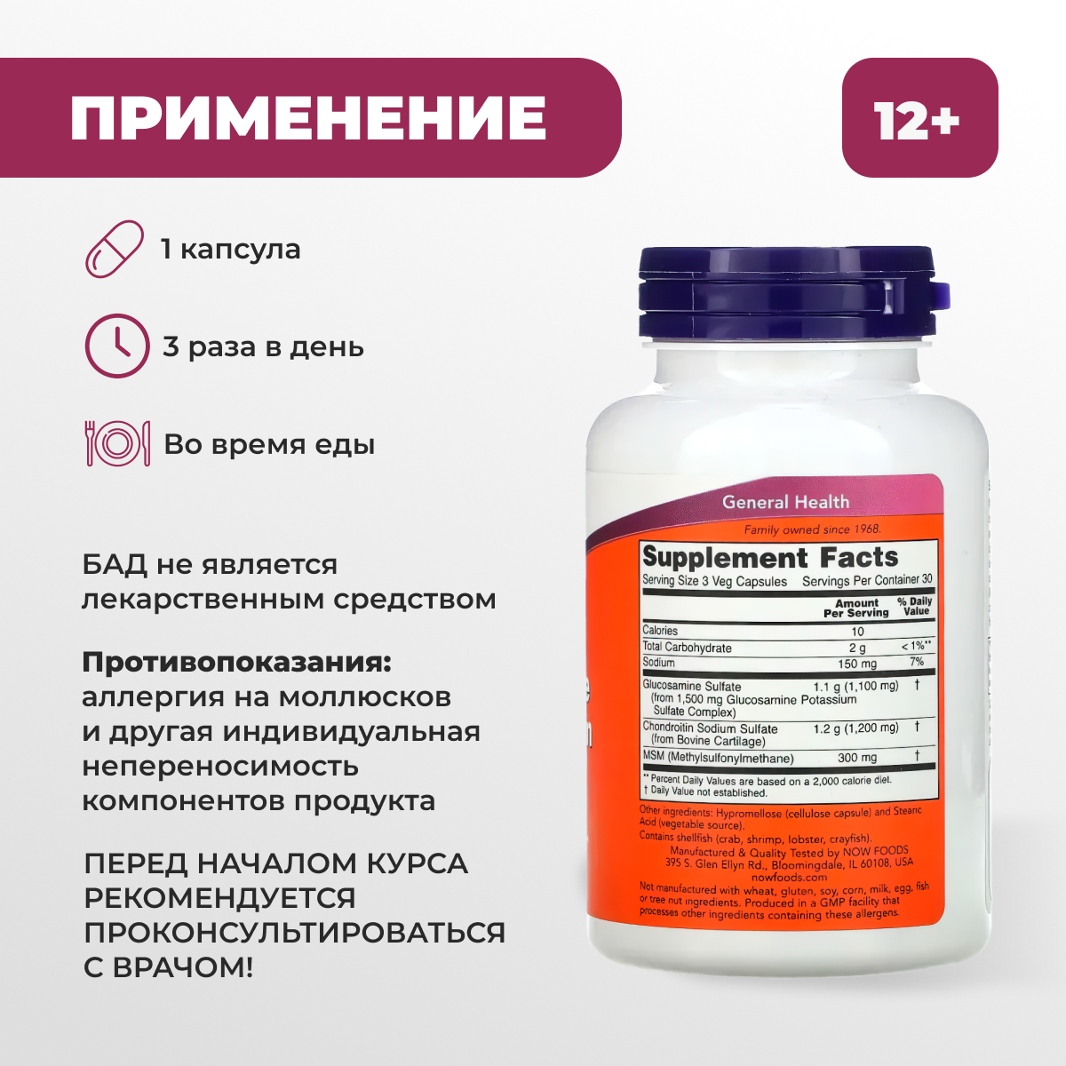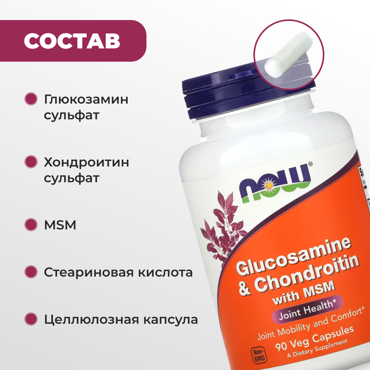 Препарат для укрепления связок и суставов NOW Glucosamine & Chondroitin with MSM, 90 шт.