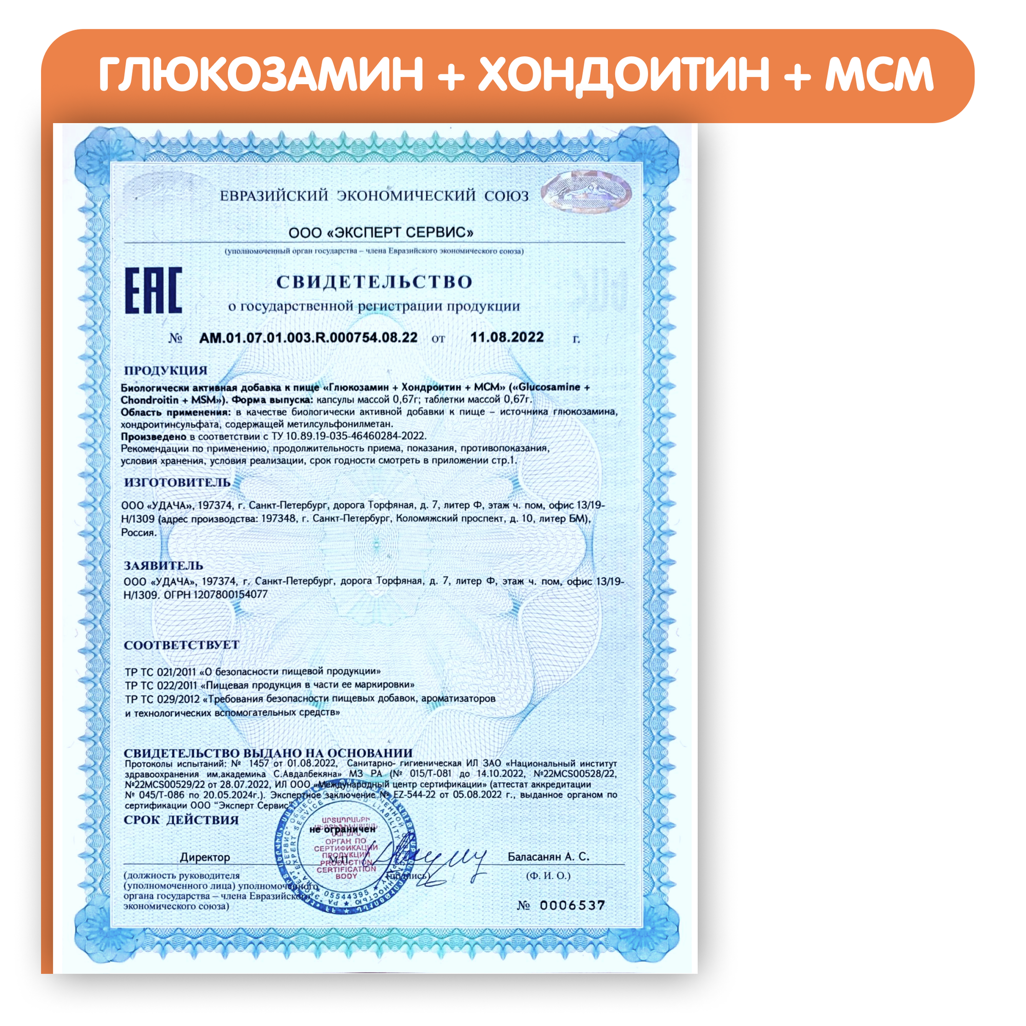 | Основной ингредиент | MCM / глюкозамин / хондроитин |
