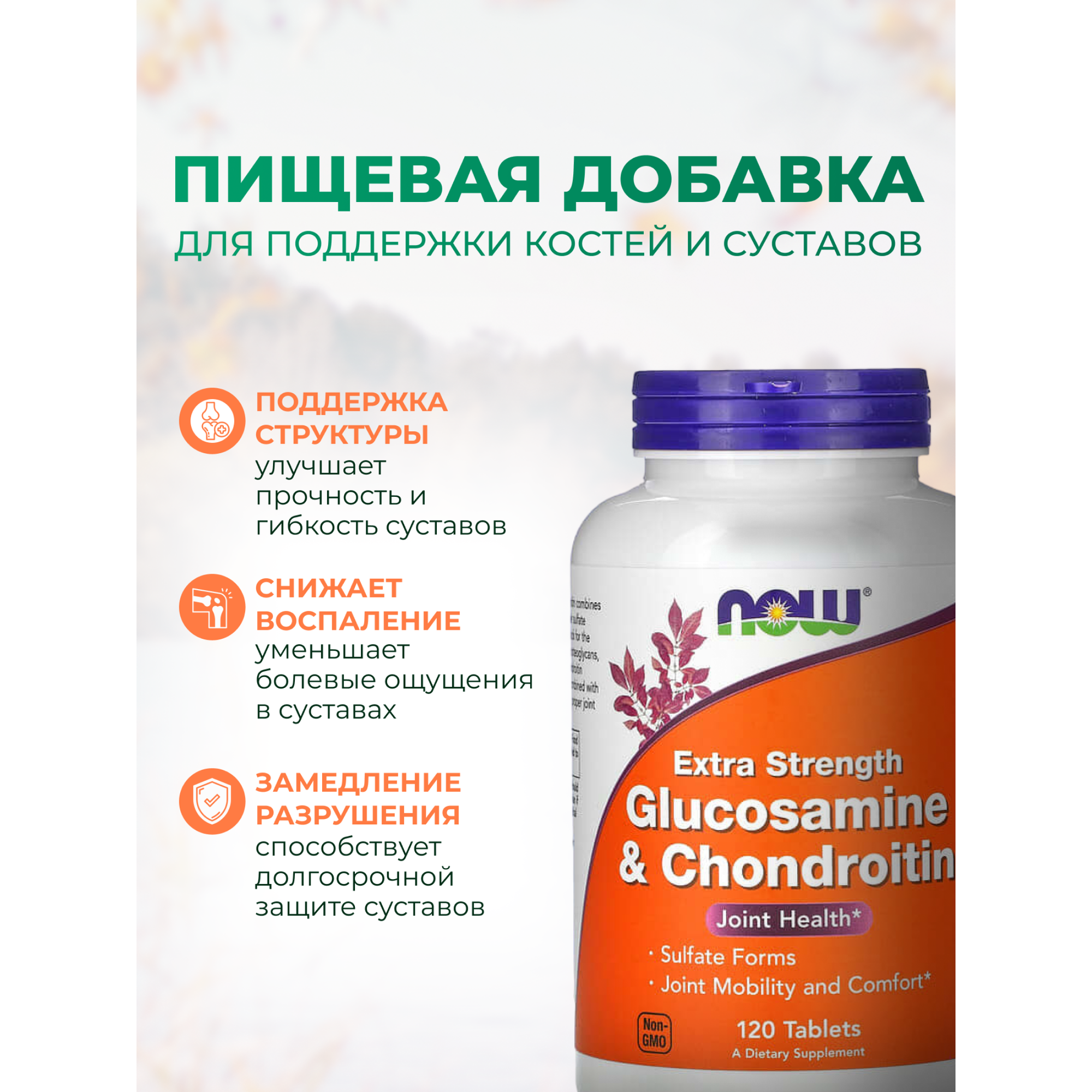 Купить Глюкозамин и Хондроитин Усиленного Действия Здоровье Суставов NOW Glucosamine & Chondroitin Extra Strength Joint Health 120 таблеток