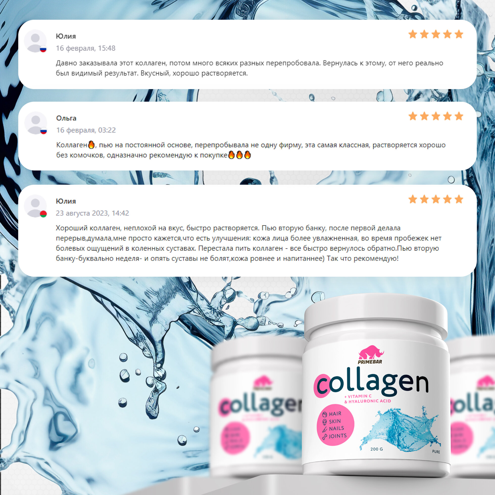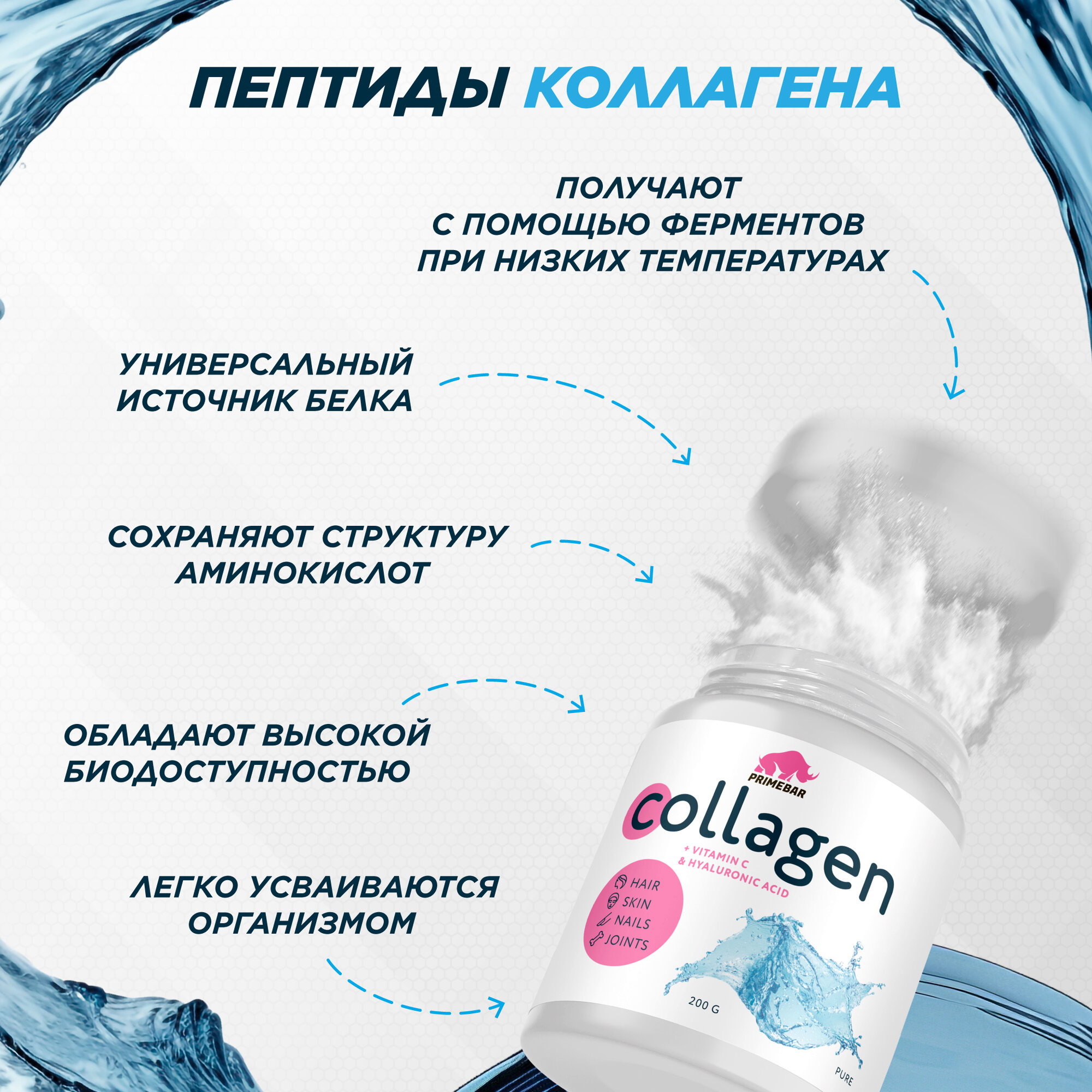 Коллаген PRIMEBAR Pure Collagen, говяжий, с гиалурон. кислотой и вит. C, 200 г