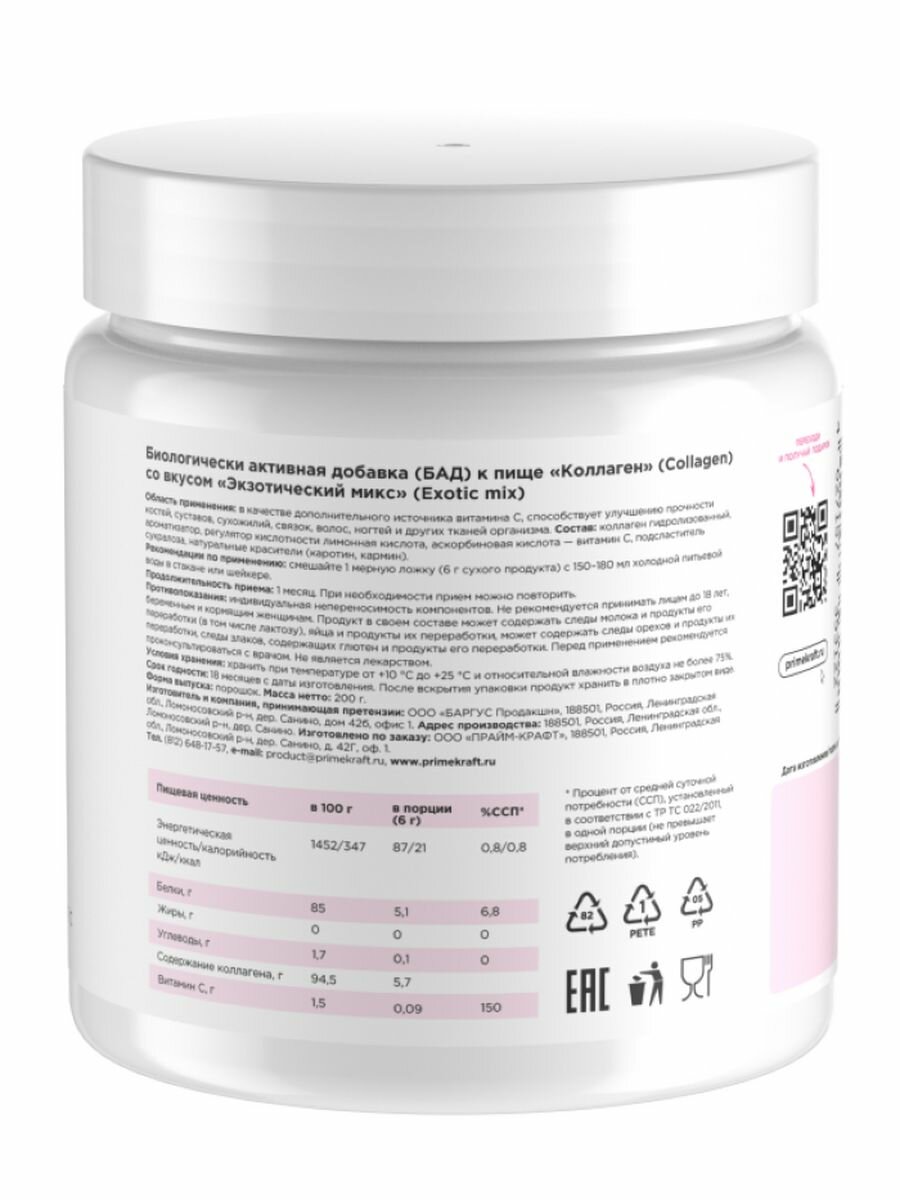Коллаген Prime-Kraft Collagen, 200 грамм, вкус: экзотик