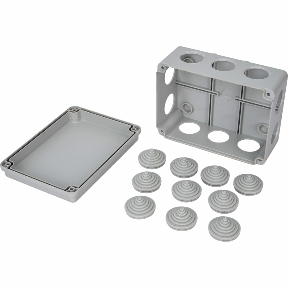 Коробка разветвительная о/у серая с 10 кабельными вводами с крыш. на винтах 150х110х70 IP55 ЭРА