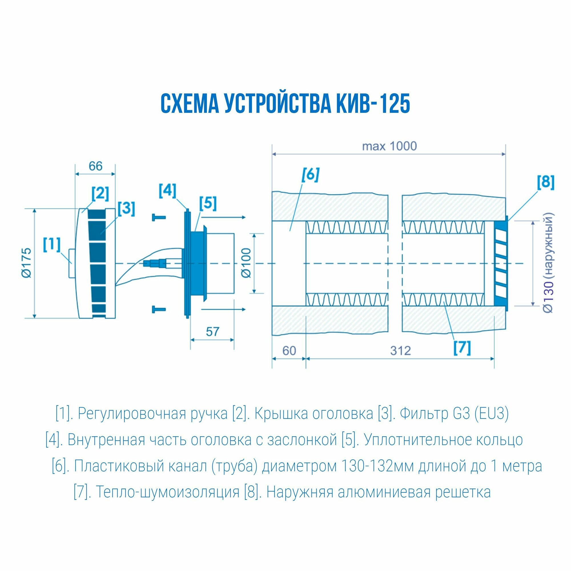 Приточный клапан КИВ-125 оголовок полуквадратный ПК