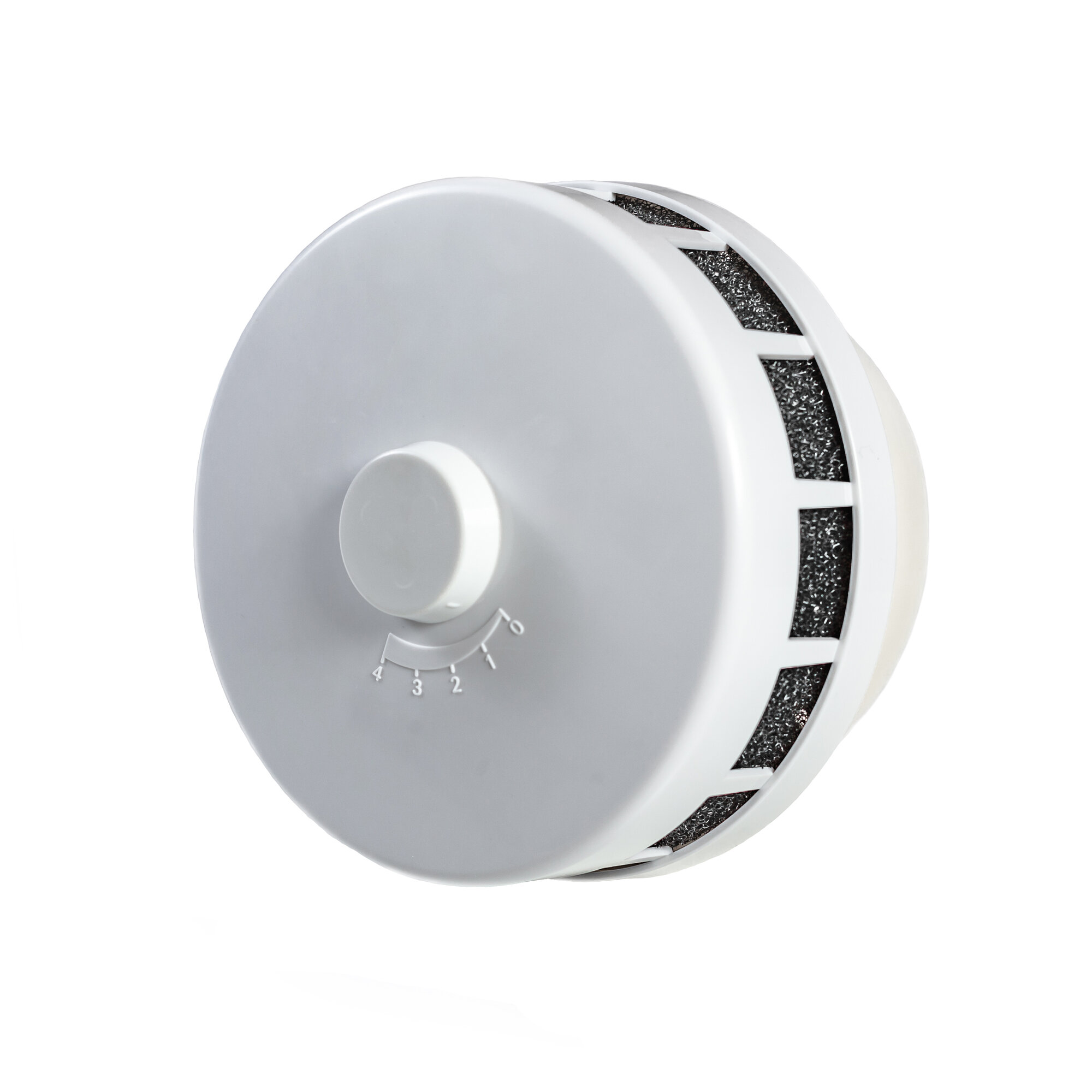 Приточный клапан КИВ-125-800 мм с белой металл решеткой (RAL 9003), круглый