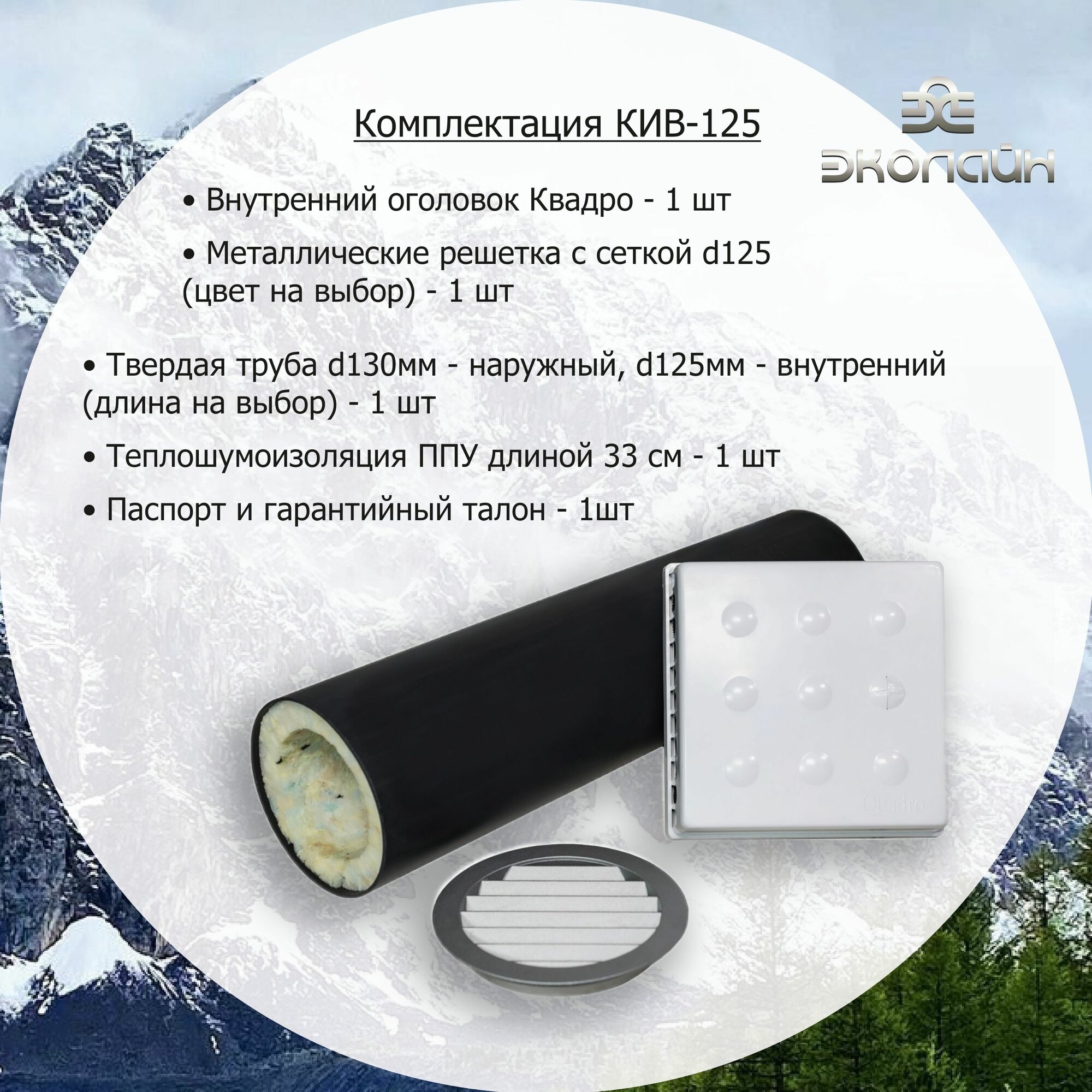 Приточный клапан КИВ-125 с 500 мм трубой, ППУ и белой металл решеткой (RAL 9003)