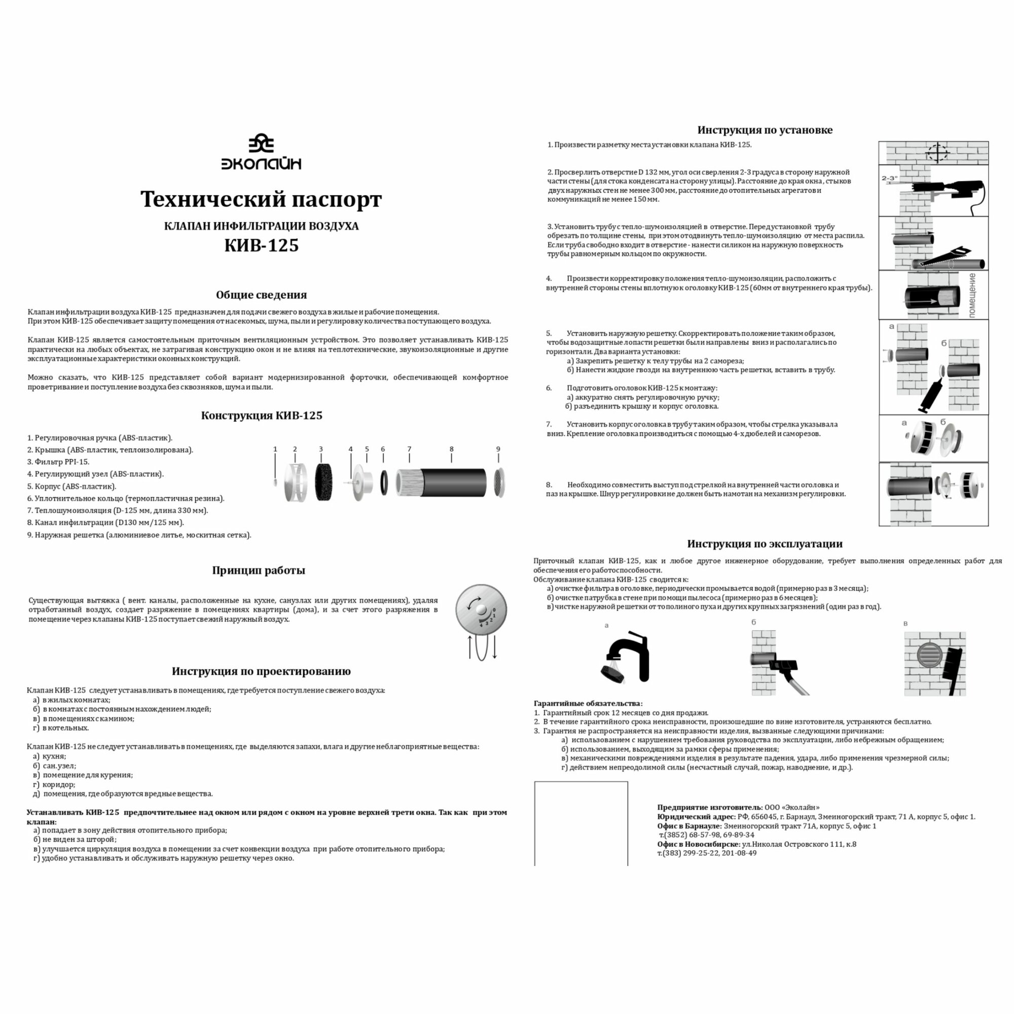 Клапан Инфильтрации Воздуха КИВ-125 (Оголовок QUADRO)