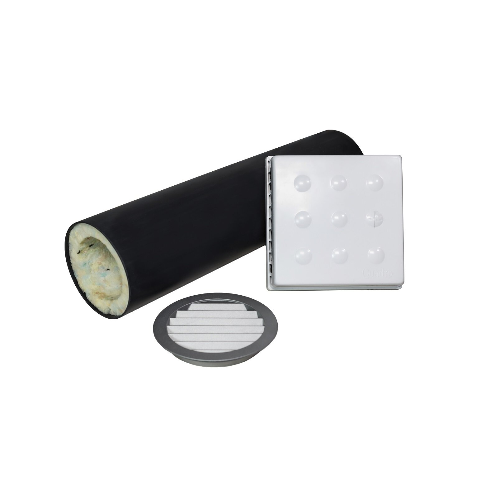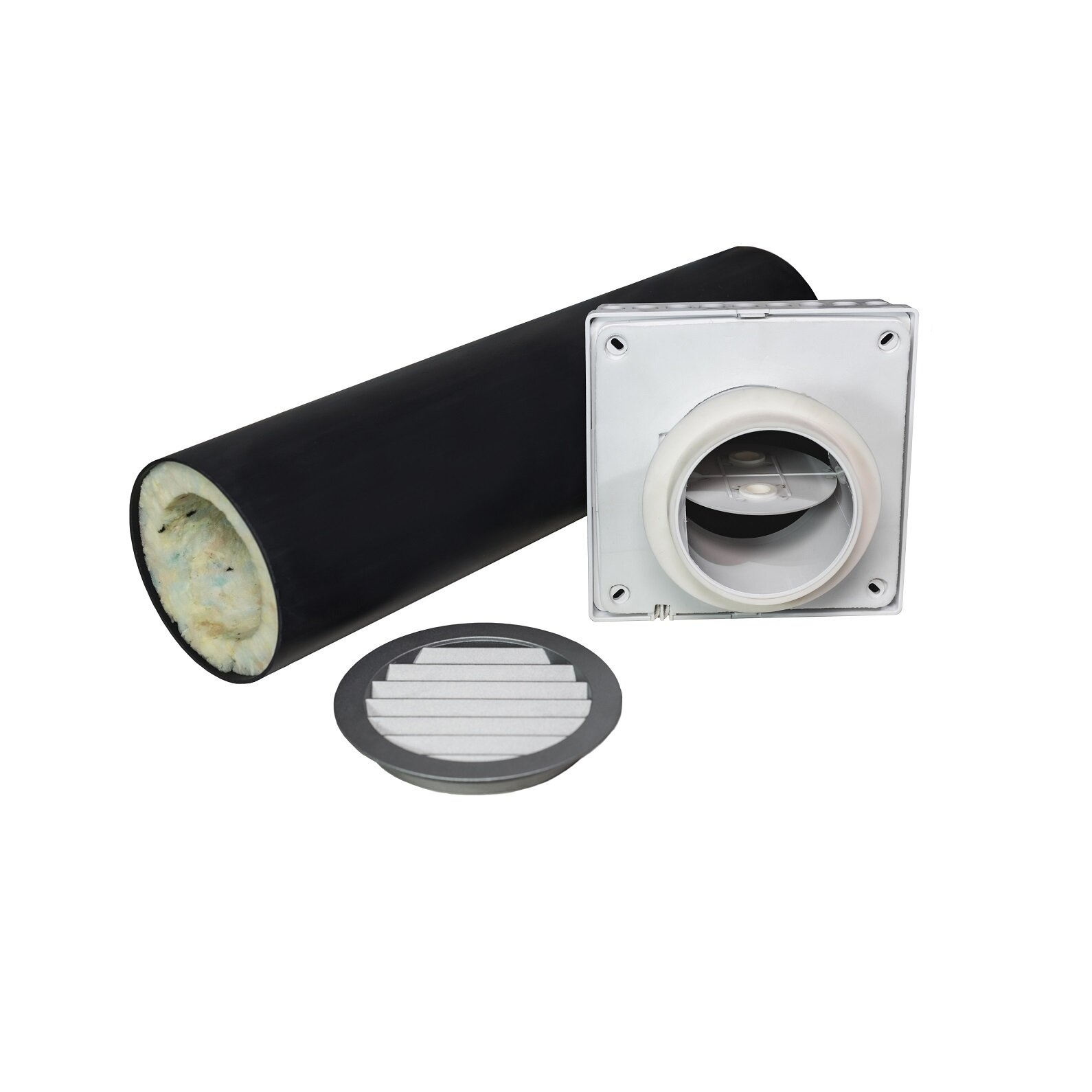 Приточный клапан КИВ-125 с 500 мм трубой, ППУ и белой металл решеткой (RAL 9003)