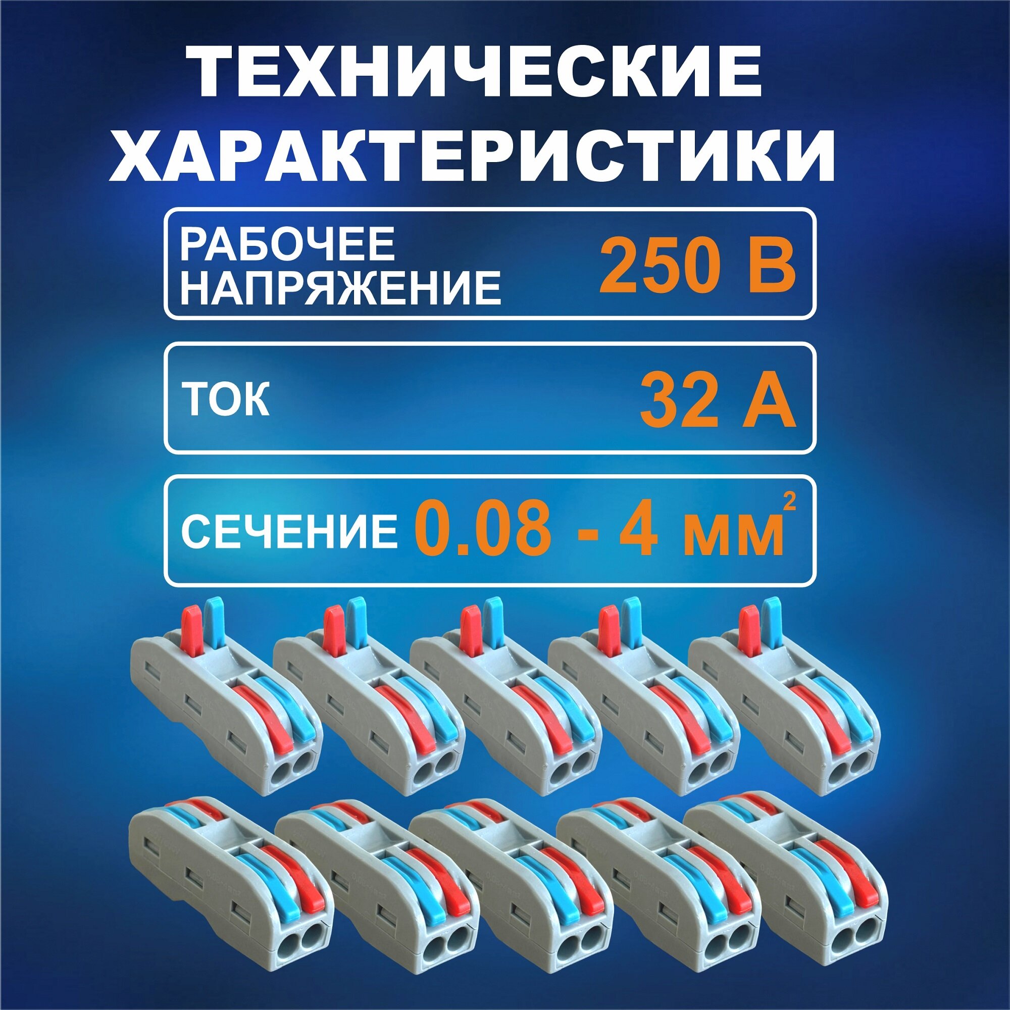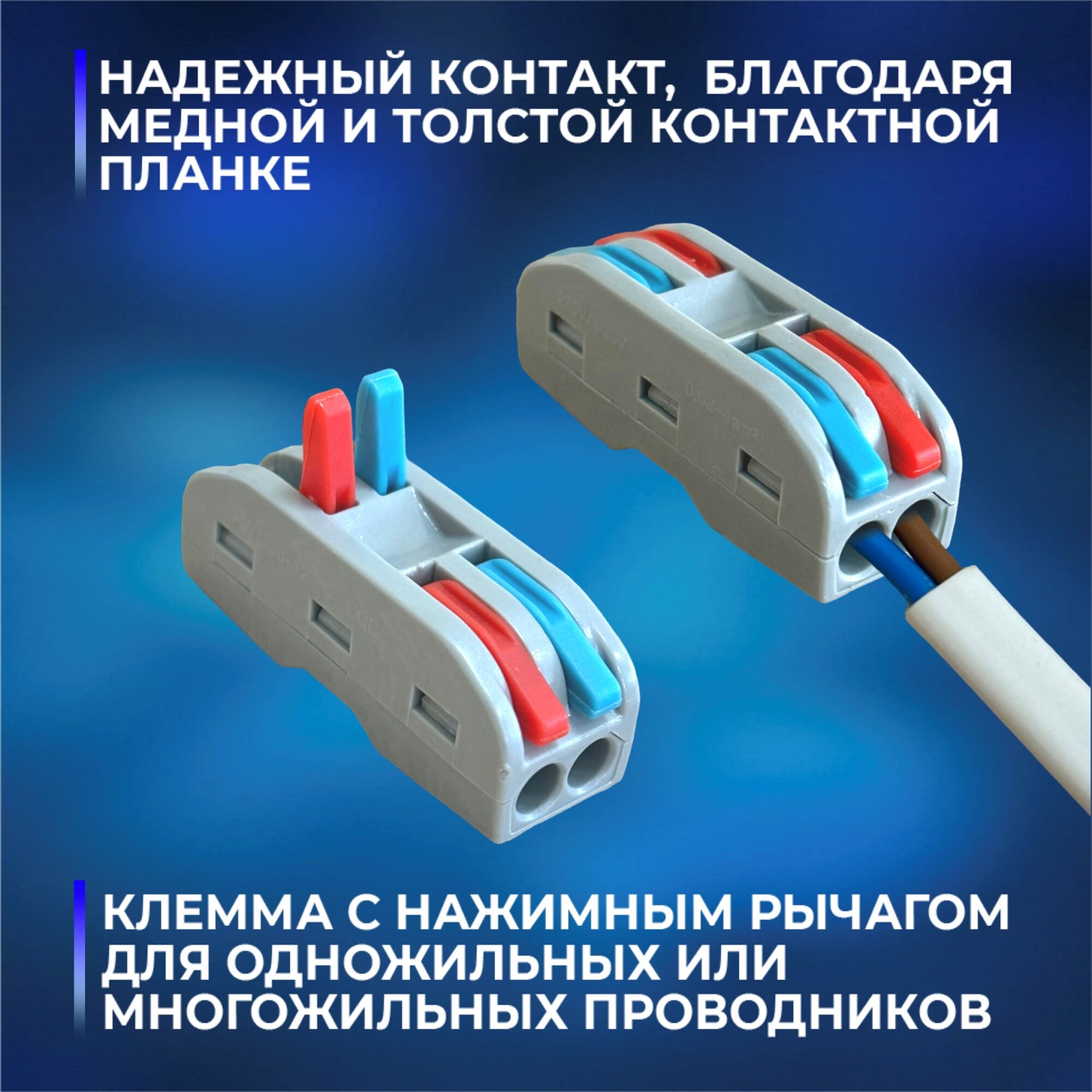 Клеммы для проводов зажимные, клемма 222-412 Электро (Аналог Wago/ ваго) - 50 шт