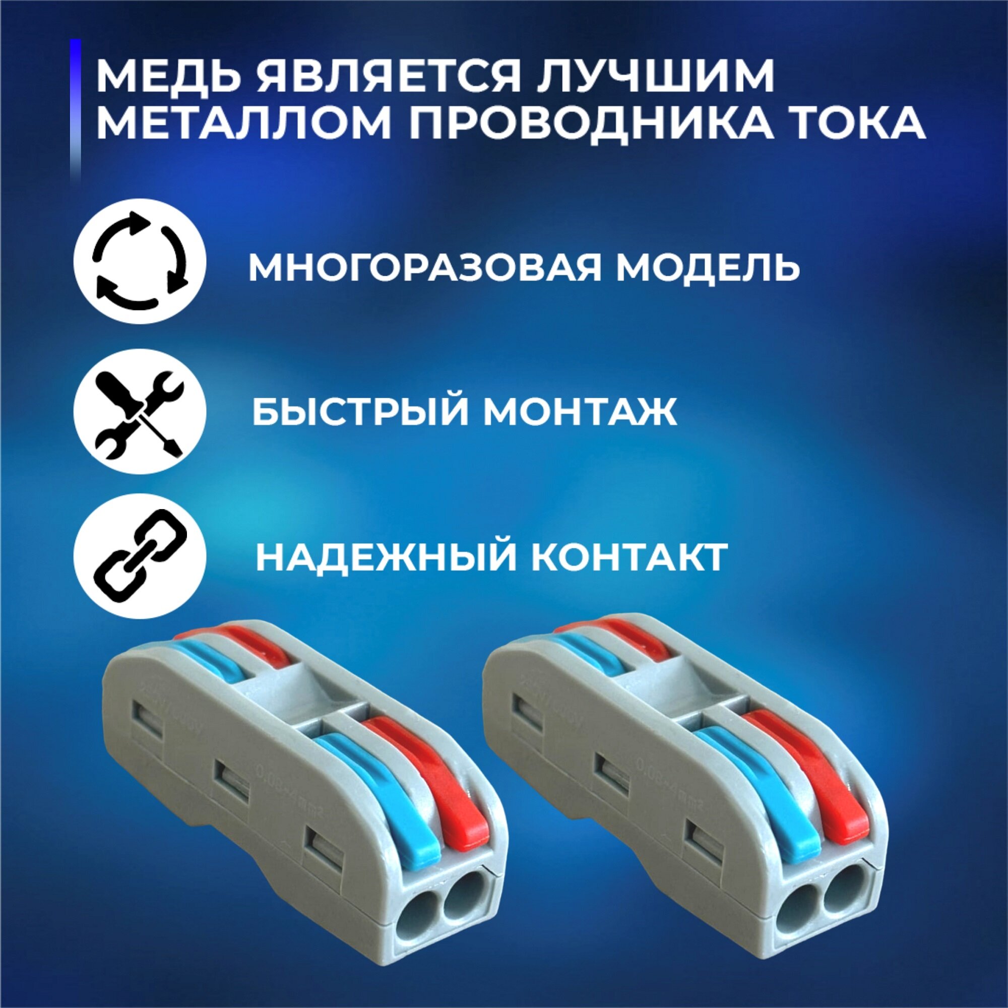Клемма пружинная быстрозажимная СМК-222/2Р-1/3 (2 шт.)