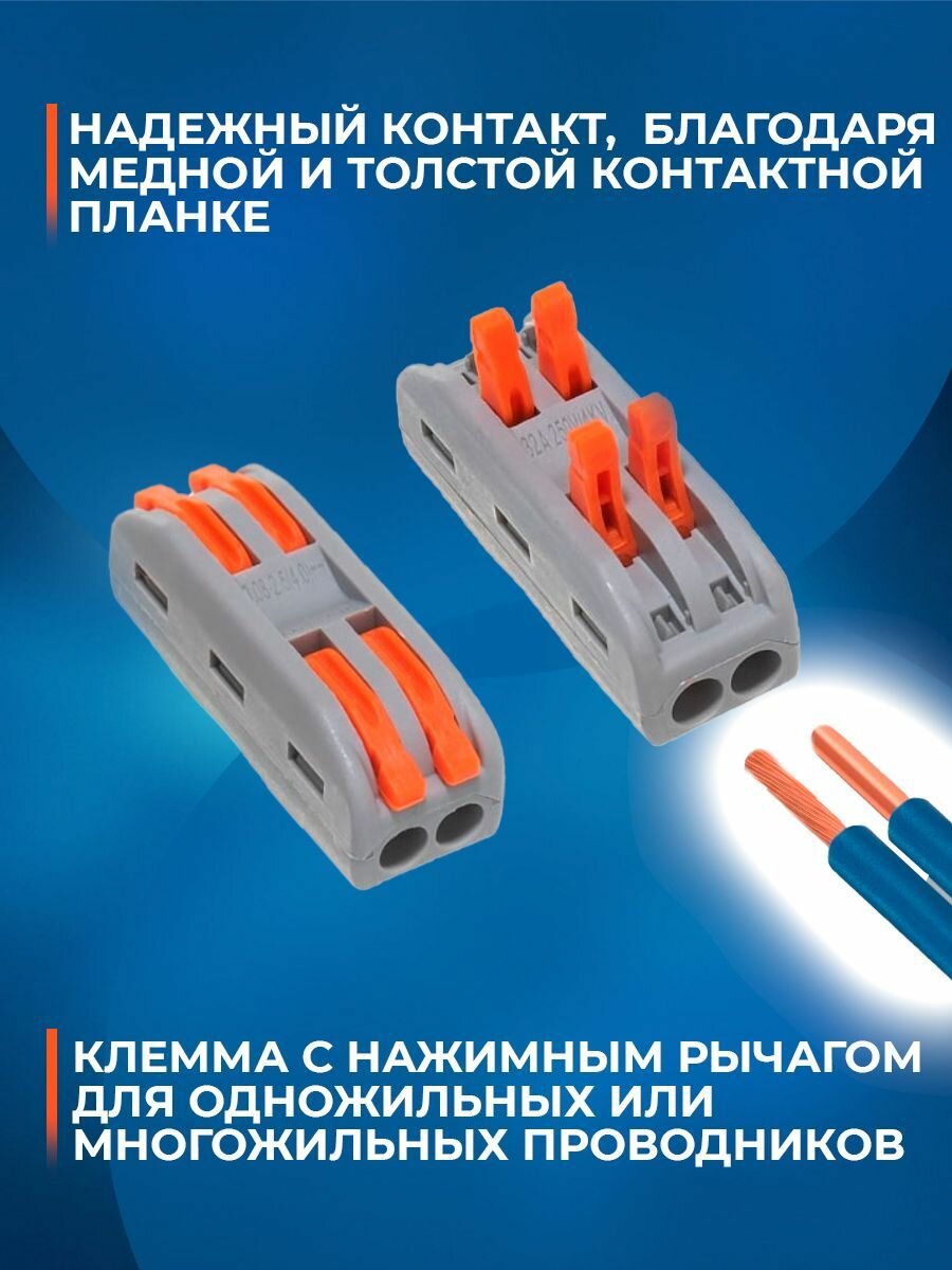 Клеммы для проводов зажимные, клемма 222-412 Электро (Аналог Wago/ ваго) - 50 шт